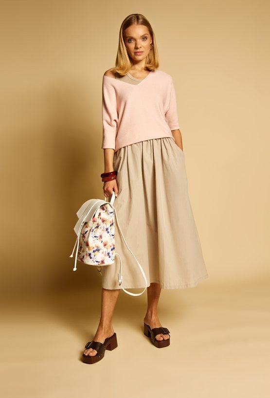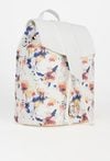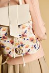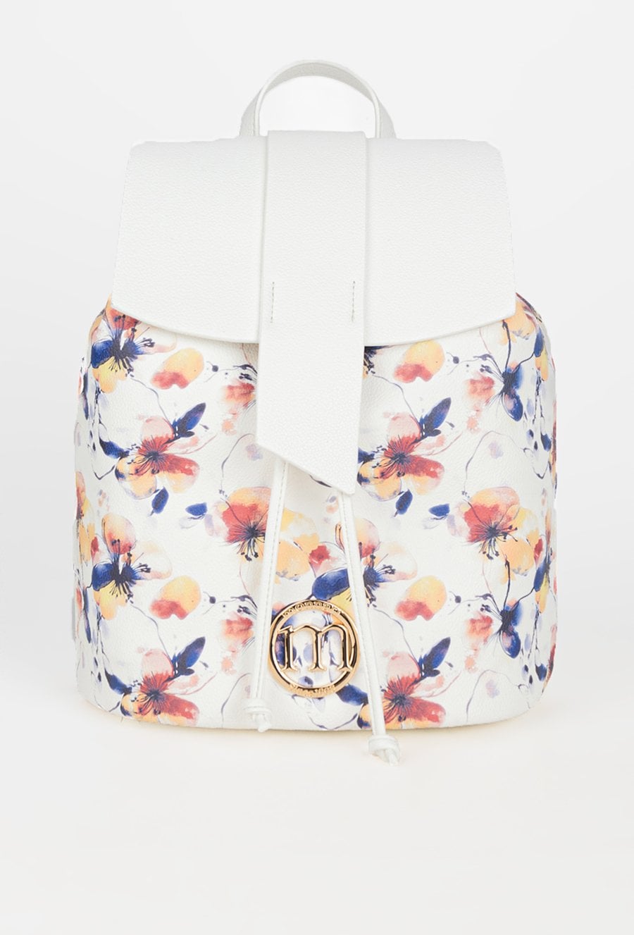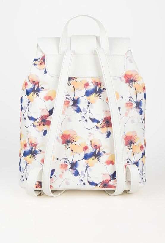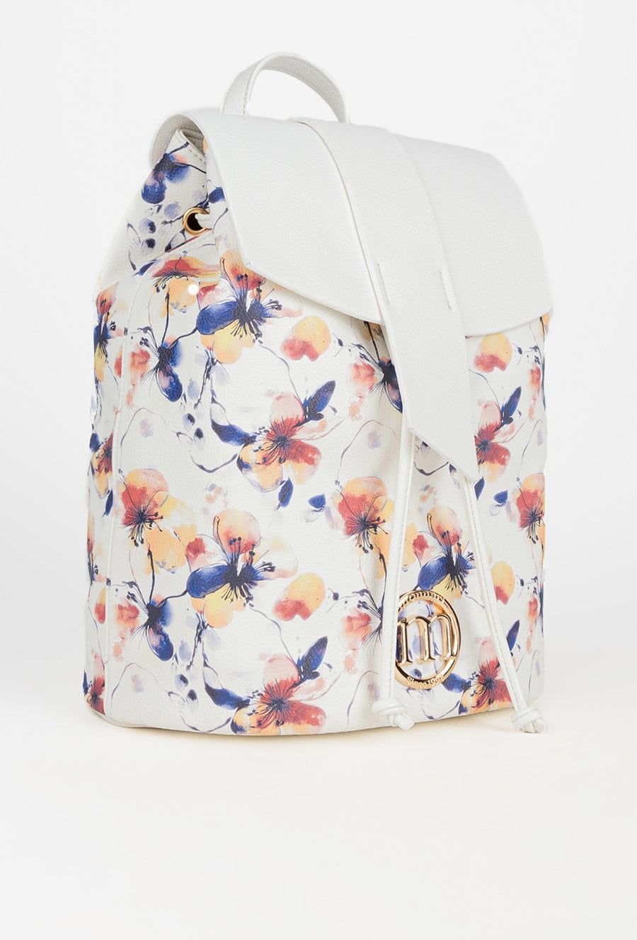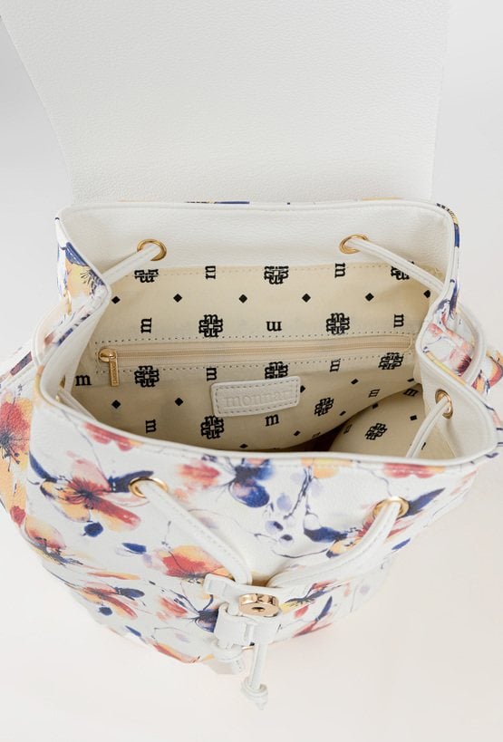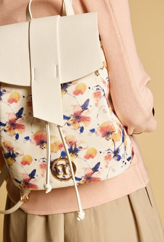 Plecak damski z kwiatowym wzorem, idealny do wiosennych stylizacji. Plecak jednokomorowy, z jasną, logowaną podszewką oraz dodatkowymi kieszonkami na drobiazgi, które ułatwiają organizację. Model zapinany na klapę z napą oraz ściągacz, łączy funkcjonalność z kobiecym, lekkim stylem. Należy przechowywać w załączonym woreczku. Wymiary: 31 cm x 34,5 cm x 14 cm.