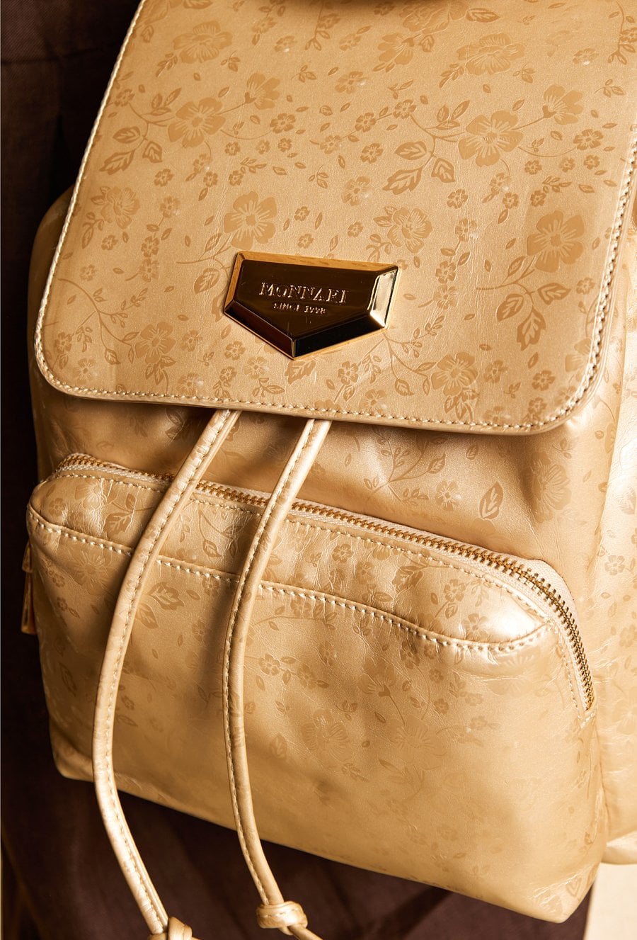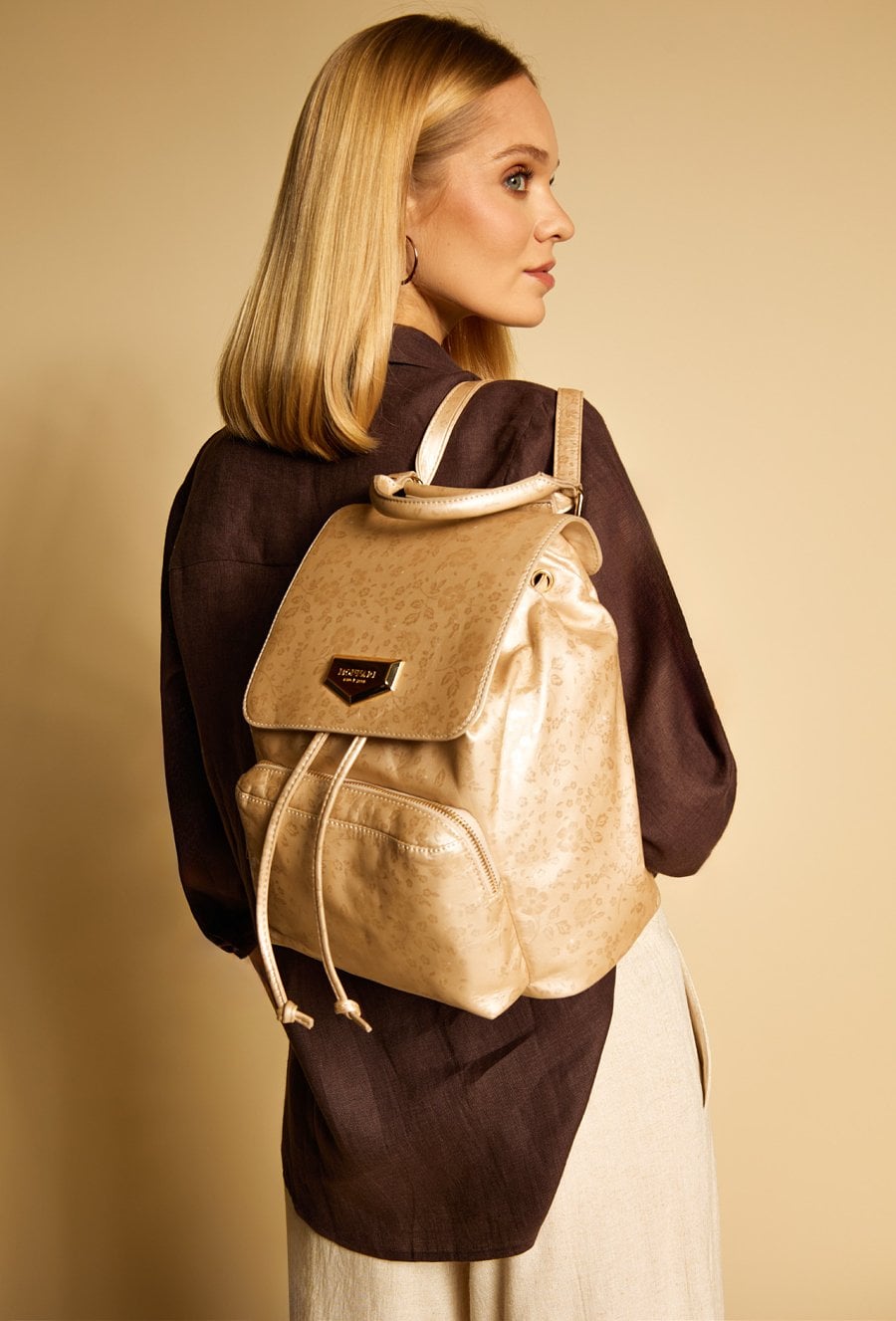 Plecak damski z delikatnym, kwiatowym wzorem, który nadaje mu subtelnego i kobiecego charakteru. Plecak jednokomorowy, z jasną, logowaną podszewką oraz dodatkowymi kieszonkami na drobiazgi, zapewniającymi wygodną organizację. Model zapinany na klapę z napą oraz ściągacz. Dodatkowym atutem jest praktyczna kieszonka z przodu, idealna na najpotrzebniejsze drobiazgi. Torbę należy przechowywać w załączonym woreczku. Wymiary: 28 cm x 40 cm x 20 cm.