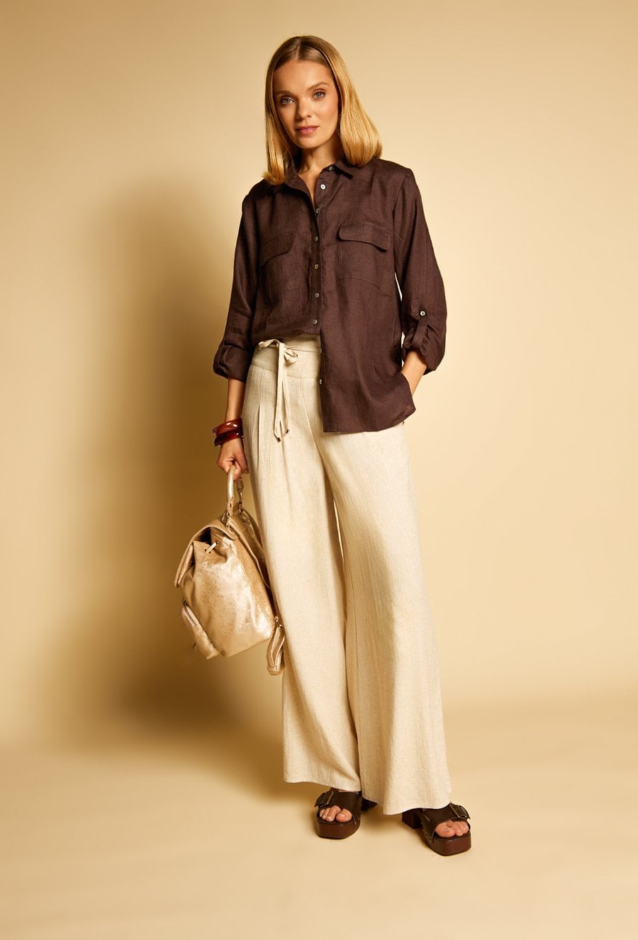 Szerokie spodnie z dodatkiem lnu