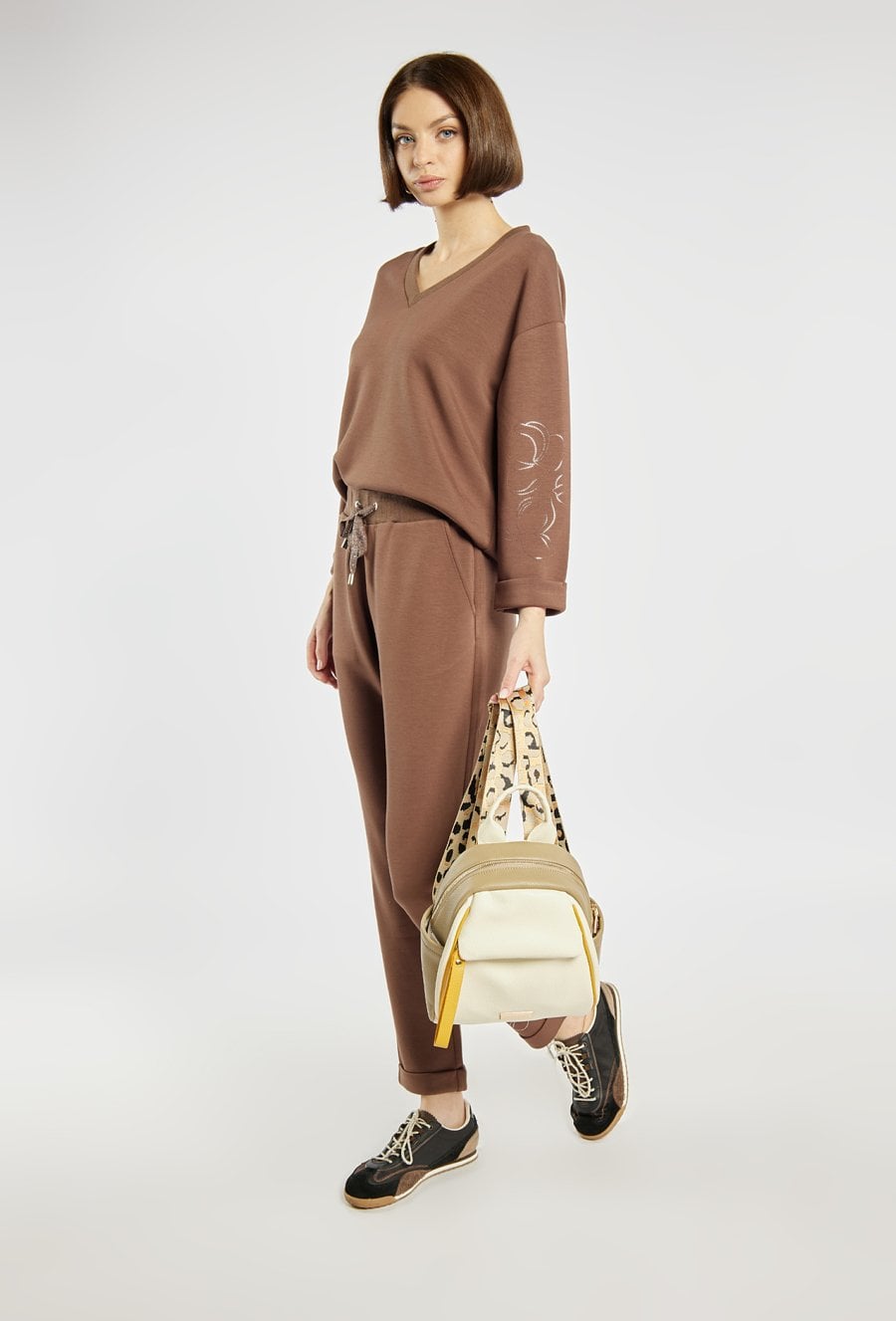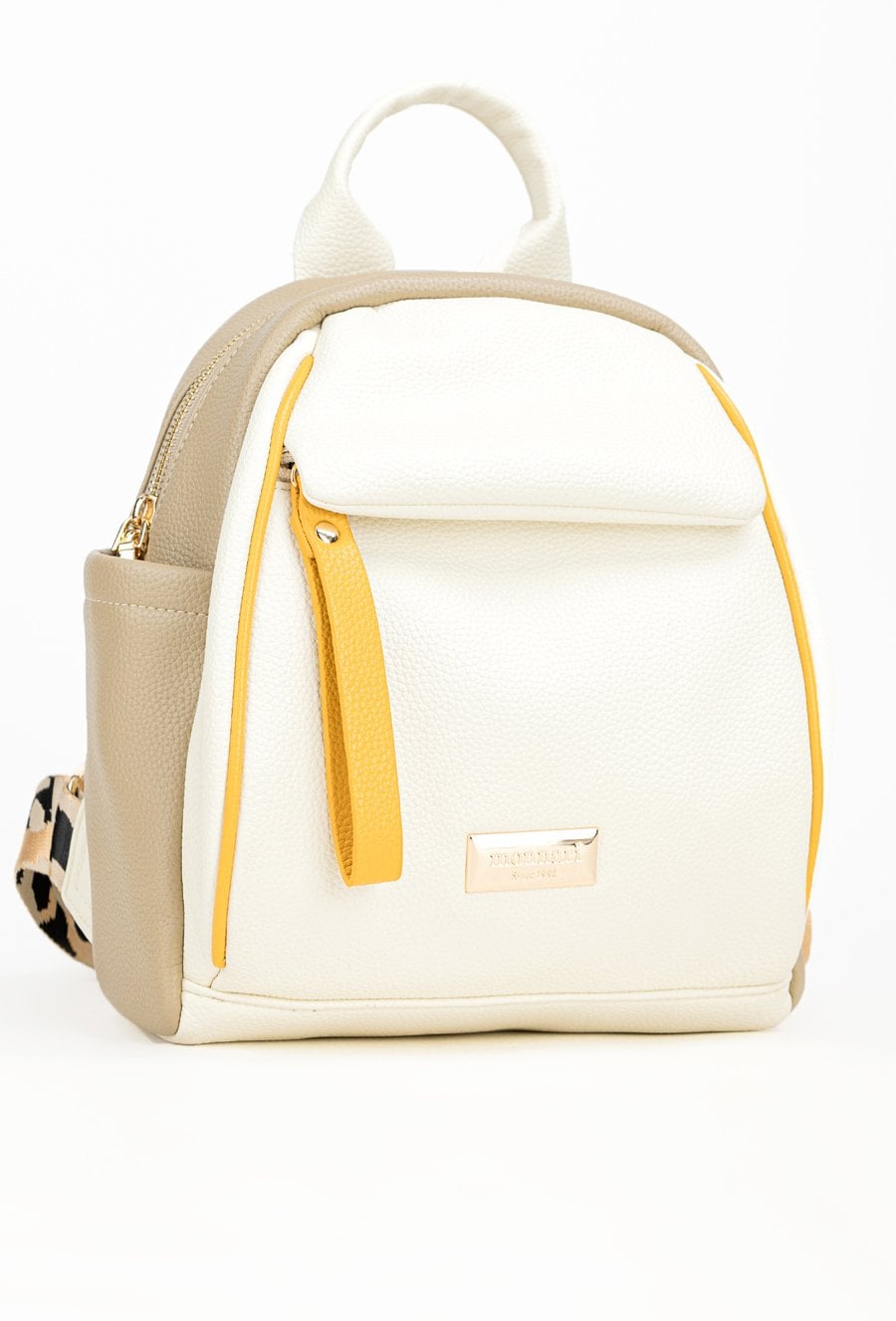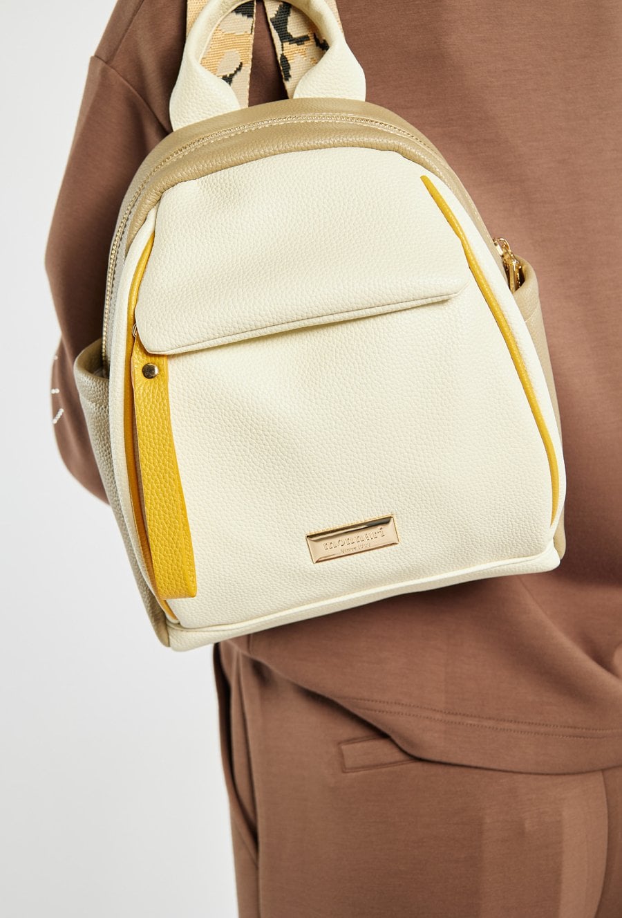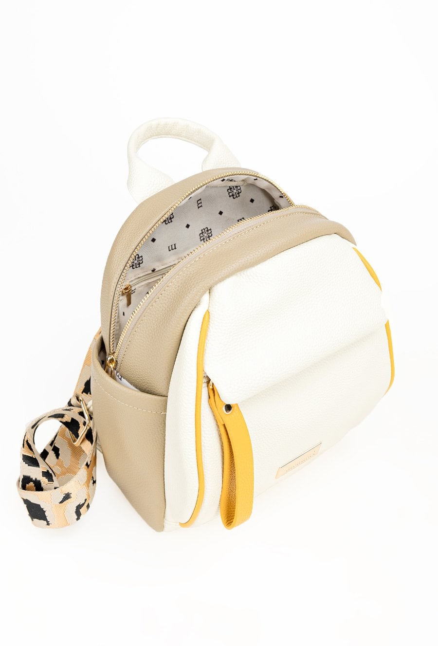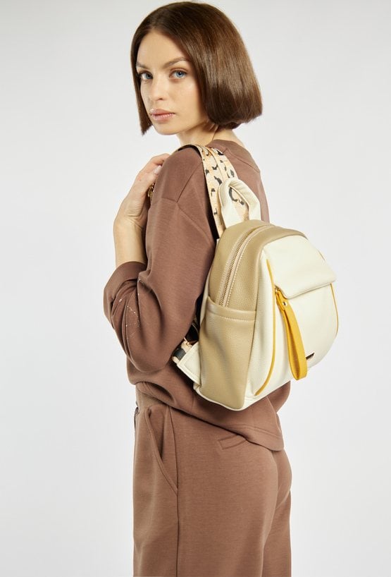 Plecak damski z oryginalnymi, wzorzystymi paskami, nadającymi mu wyjątkowego charakteru. Model jednokomorowy, z jasną, logowaną podszewką oraz dodatkowymi kieszonkami na drobiazgi. Wymiary plecaka: 19,5 cm x 27 cm x 12 cm. Plecak należy przechowywać w dołączonym woreczku.