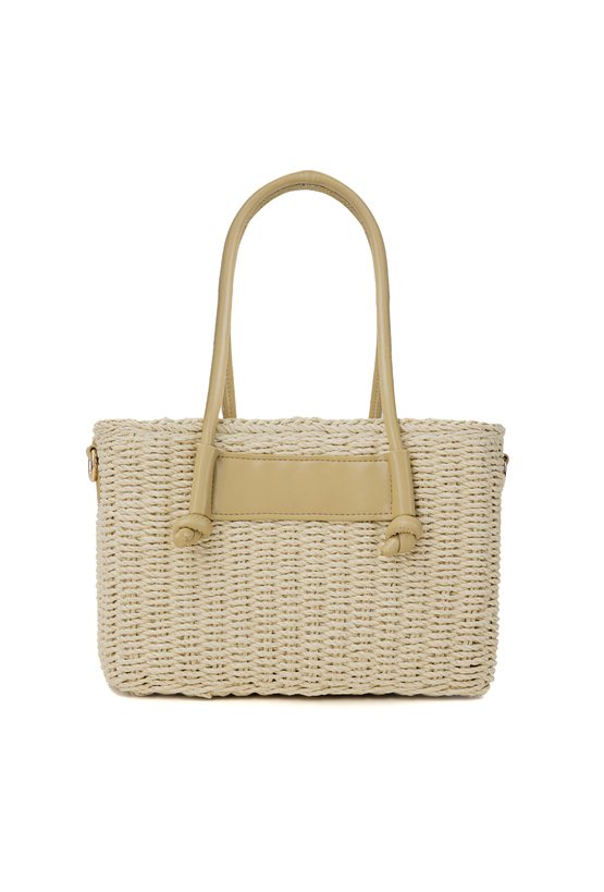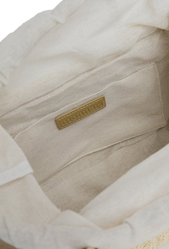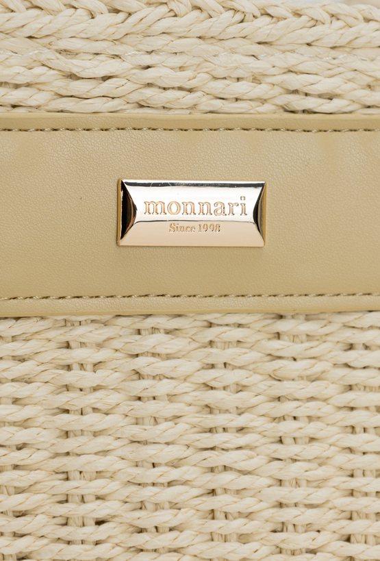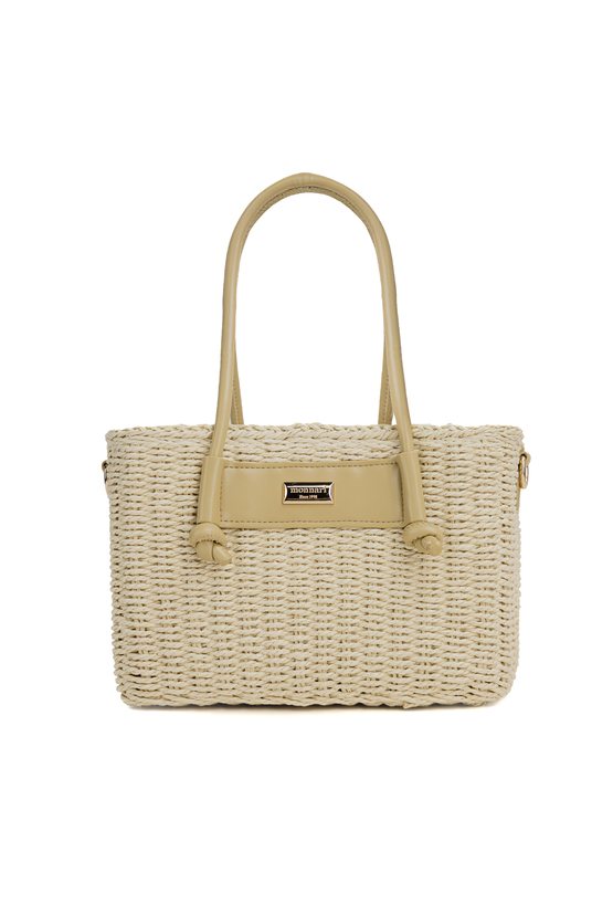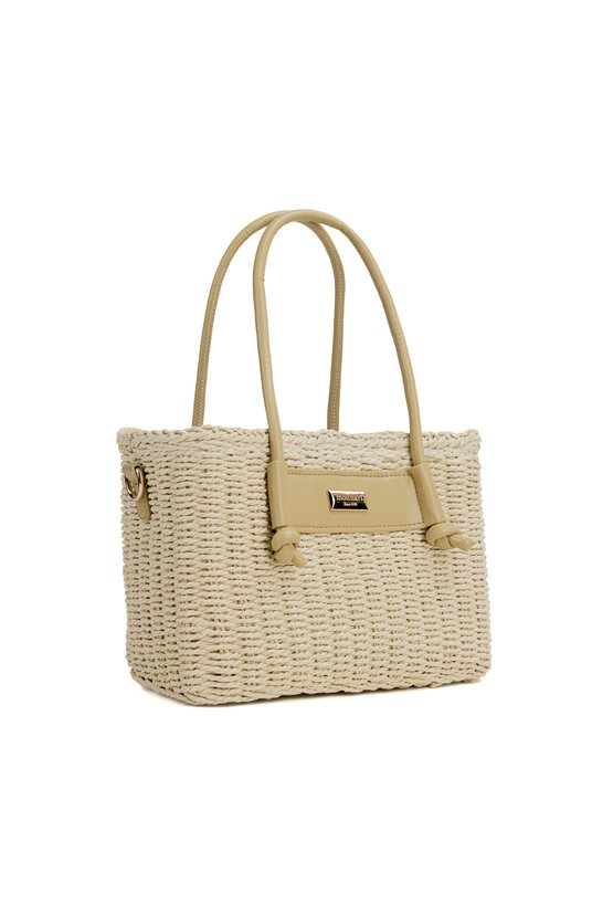Pleciony koszyk damski o wymiarach 26 × 17 × 13 cm. Jednokomorowy model z jasną podszewką oraz dodatkową kieszonką na drobiazgi. Koszyk zawieszony na rączkach, zapinany na ściągacz. W zestawie regulowany pasek. Torbę należy przechowywać w dołączonym woreczku.