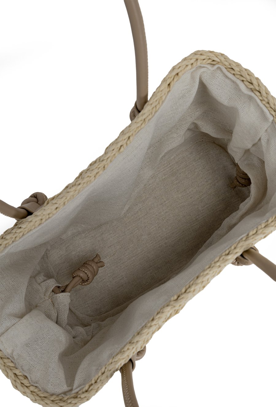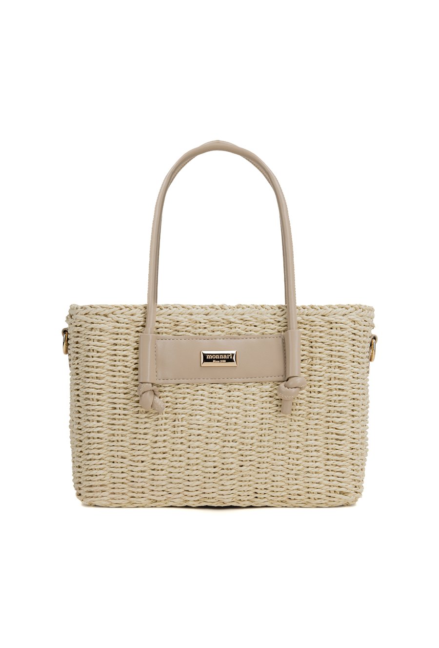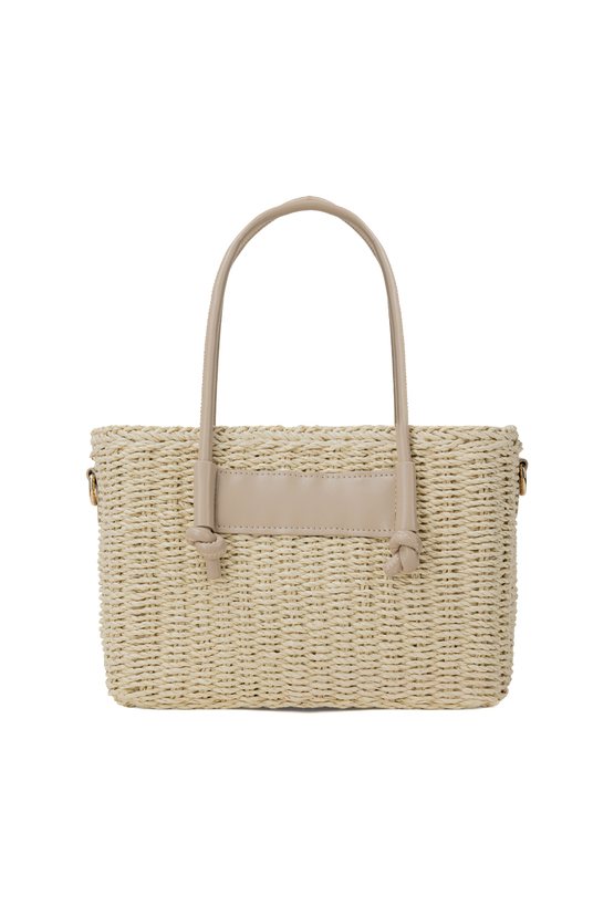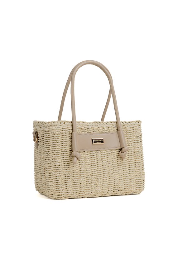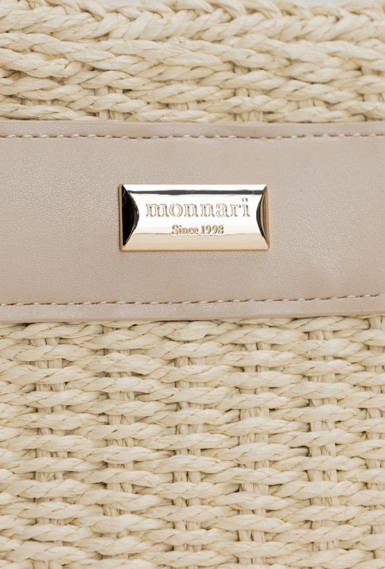 Pleciony koszyk damski o wymiarach 26 × 17 × 13 cm. Jednokomorowy model z jasną podszewką oraz dodatkową kieszonką na drobiazgi. Koszyk zawieszony na rączkach, zapinany na ściągacz. W zestawie regulowany pasek. Torbę należy przechowywać w dołączonym woreczku.