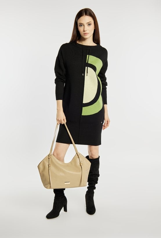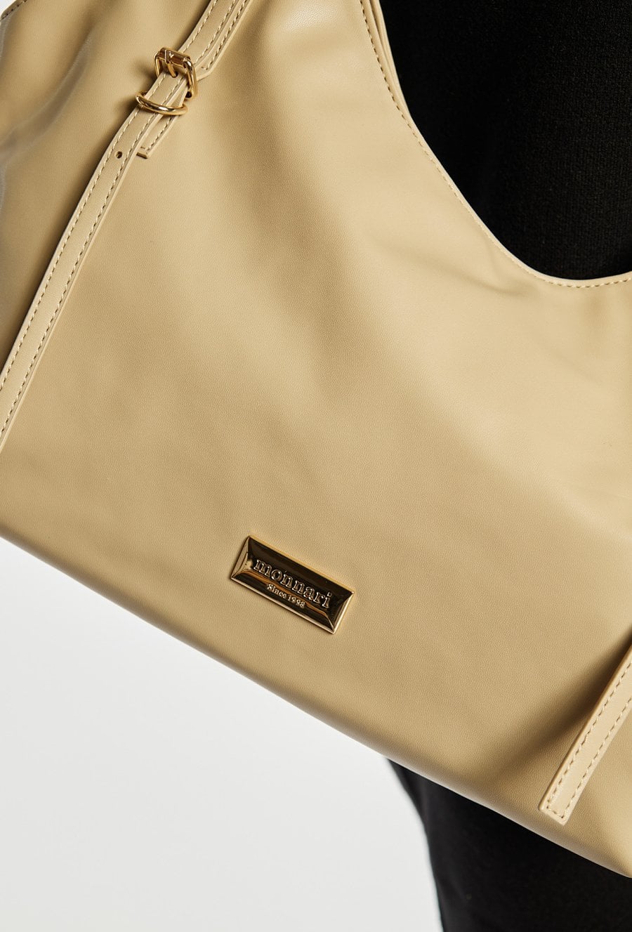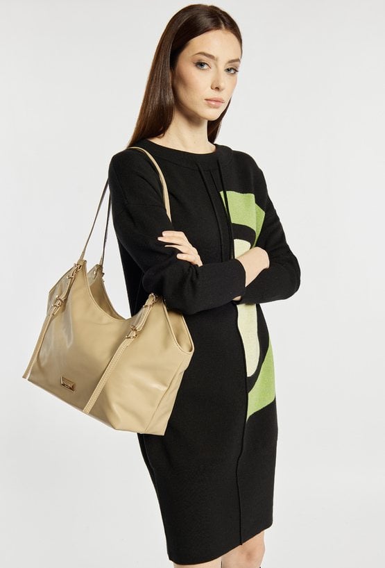 Torba damska z regulowanymi rączkami, idealna do codziennych stylizacji. Torba jednokomorowa, z jasną, logowaną podszewką oraz dodatkowymi kieszonkami na drobiazgi, które ułatwiają organizację. Model zapinany od góry na suwak, praktyczny i pojemny. Wymiary torby: 48 cm x 24 cm x 12 cm. Należy przechowywać w dołączonym woreczku.