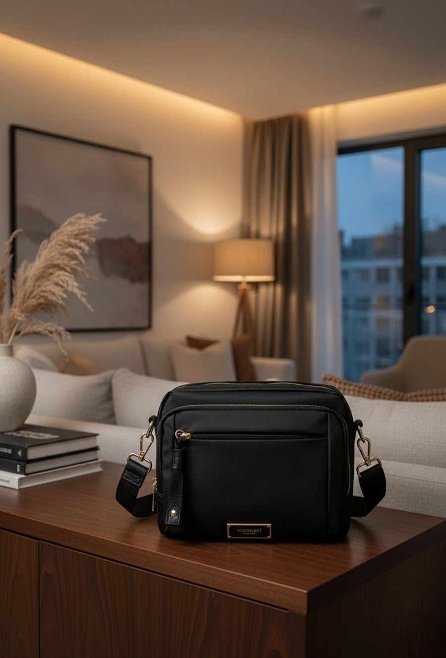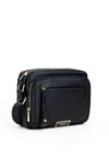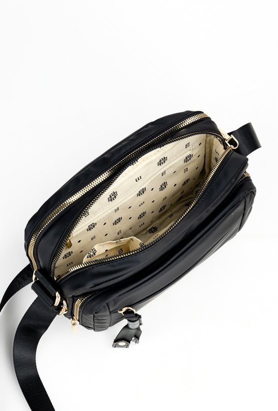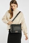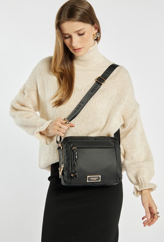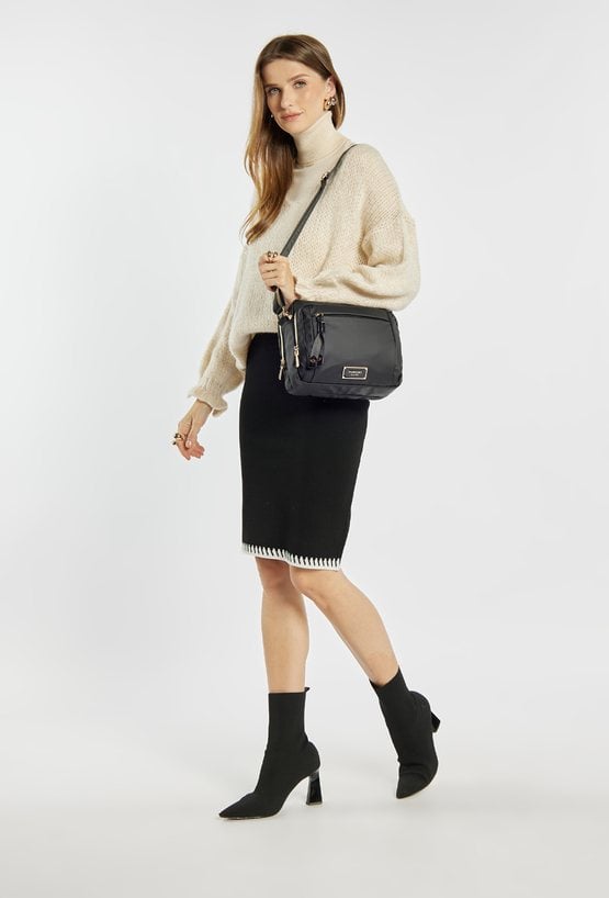 Pojemna torba damska o funkcjonalnym designie, zawieszona na regulowanym pasku, który umożliwia wygodne noszenie na co dzień. Model dwukomorowy, wykończony jasnymi, logowanymi podszewkami, wyposażony w praktyczne kieszonki wewnętrzne ułatwiające organizację. Dodatkowym atutem są dwie przednie kieszenie zapinane na suwak. Torebkę należy przechowywać w dołączonym woreczku. Wymiary: 25 cm x 23 cm x 13 cm.