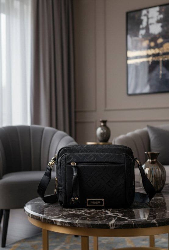 Pojemna torba damska o funkcjonalnym designie, zawieszona na regulowanym pasku, który umożliwia wygodne noszenie na co dzień. Model dwukomorowy, wykończony jasnymi, logowanymi podszewkami, wyposażony w praktyczne kieszonki wewnętrzne ułatwiające organizację. Dodatkowym atutem są dwie przednie kieszenie zapinane na suwak. Torebkę należy przechowywać w dołączonym woreczku. Wymiary: 25 cm x 23 cm x 13 cm.
