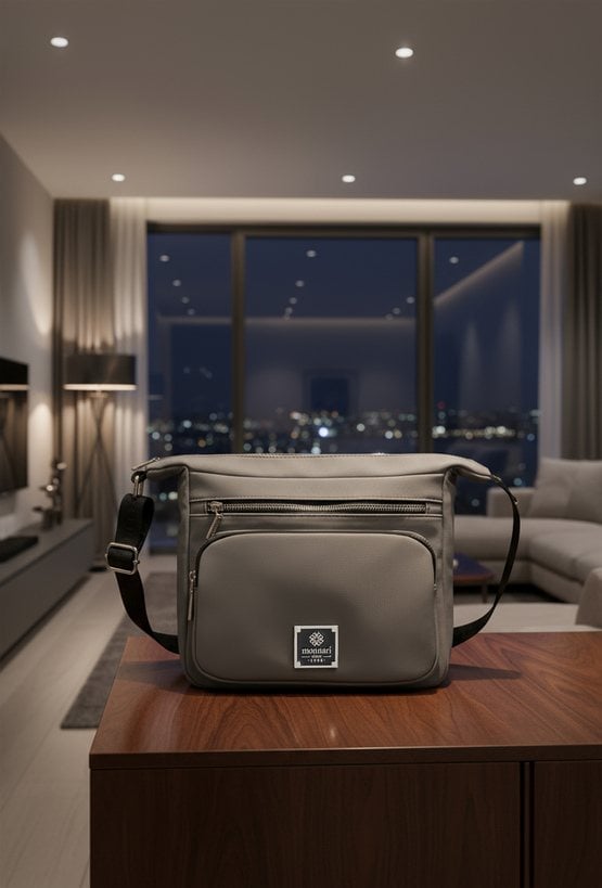Praktyczna torba damska zawieszona na regulowanym pasku, Torba jednokomorowa o jasnej logowanej podszewce. Dodatkowym atutem są funkcjonalne kieszonki – dwie umieszczone z przodu oraz jedna z tyłu – które ułatwiają organizację najpotrzebniejszych drobiazgów i zapewniają szybki dostęp do nich. Torebkę należy przechowywać w dołączonym woreczku. Wymiary torby: 25 cm x 26 cm x 10 cm.