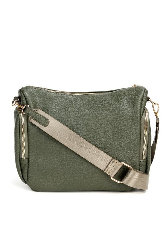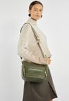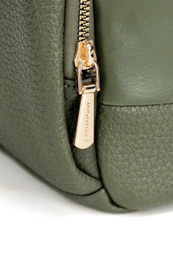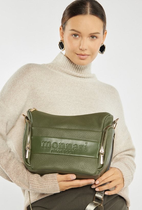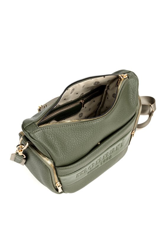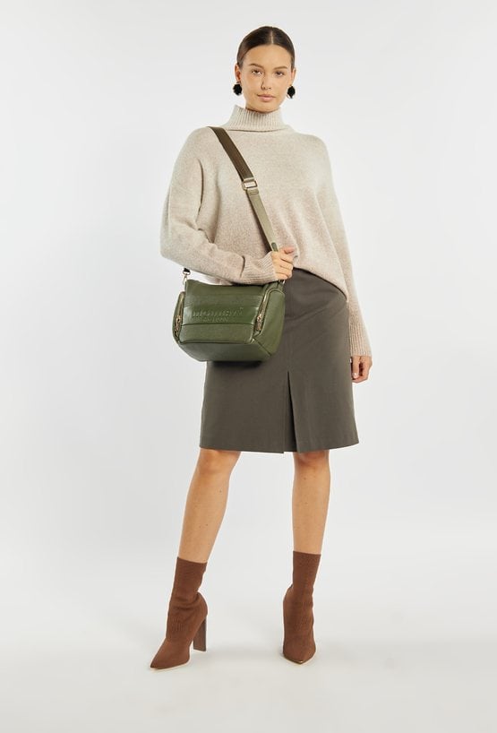 Stylowa torba damska o wymiarach 27 × 21,5 × 11,5 cm to idealny wybór na co dzień. Jednokomorowe wnętrze z jasną, logowaną podszewką i dodatkowymi kieszonkami pozwala utrzymać porządek. Torba zawieszona jest na regulowanym pasku z możliwością odpięcia. Z przodu znajduje się kieszonka zapinana na napę, a po bokach praktyczne kieszenie zamykane na suwak. Należy przechowywać w dołączonym woreczku.