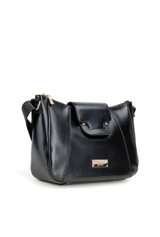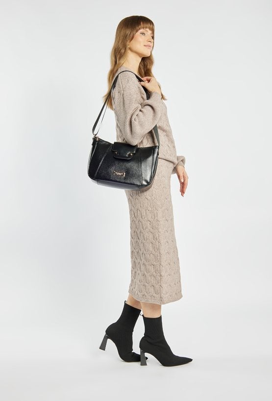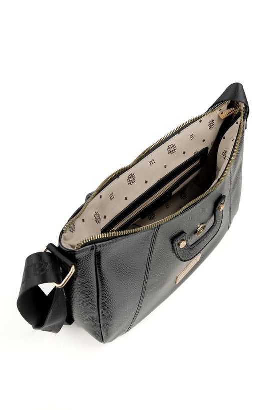 Tekstylna torba damska o wymiarach: 32 cm x 21 cm x 9 cm. Torba jednokomorowa o jasnej, logowanej podszewce z dodatkowymi kieszonkami na drobiazgi. Model zapinany na suwak oraz małą klapę z napą, co zwiększa bezpieczeństwo przechowywania. Całość zawieszona na regulowanym, wzorzystym pasku. Torbę należy przechowywać w załączonym woreczku.