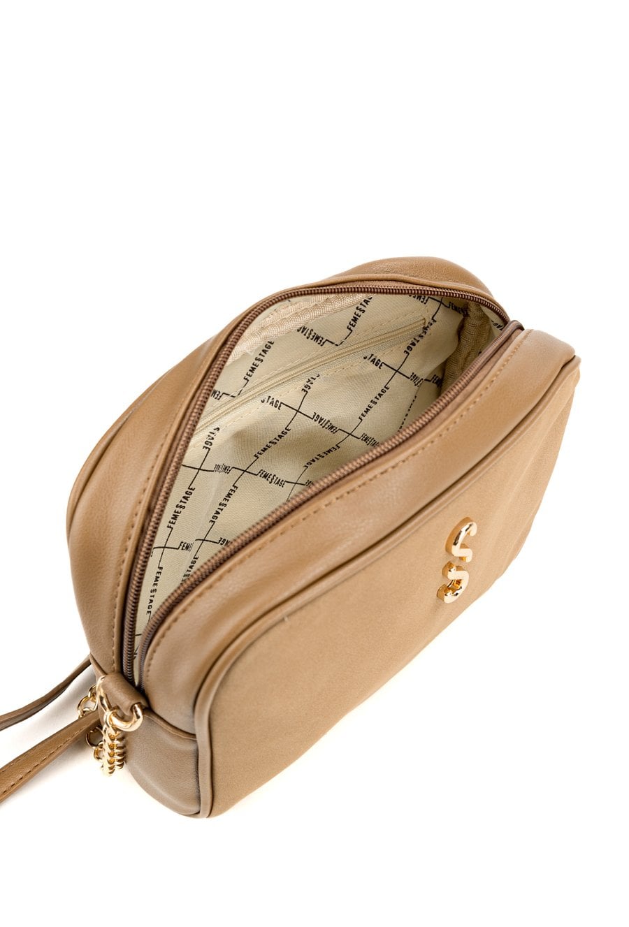 Torba damska typu crossbody o wymiarach 23 × 17,5 × 7 cm, zawieszona na regulowanym pasku z ozdobnym elementem łańcuszka, jednokomorowa, z jasnym, logowanym wnętrzem oraz kieszonkami na drobiazgi.Torbę należy przechowywać w załączonym woreczku.