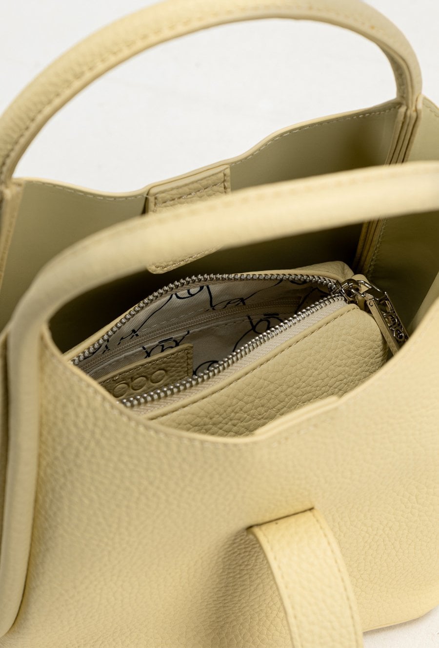 Torba damska na co dzień o wymiarach 22,5 × 18 × 13 cm. Jednokomorowy model z dodatkową torebką w środku. Torebka zawieszona na rączkach. W zestawie regulowany pasek, który można przypiąć zarówno do większej, jak i mniejszej torebki. Torbę należy przechowywać w dołączonym woreczku.