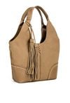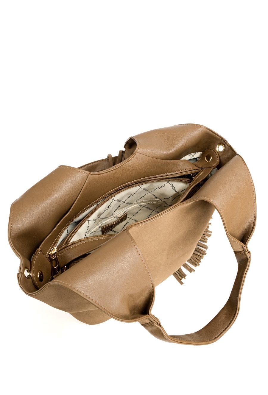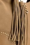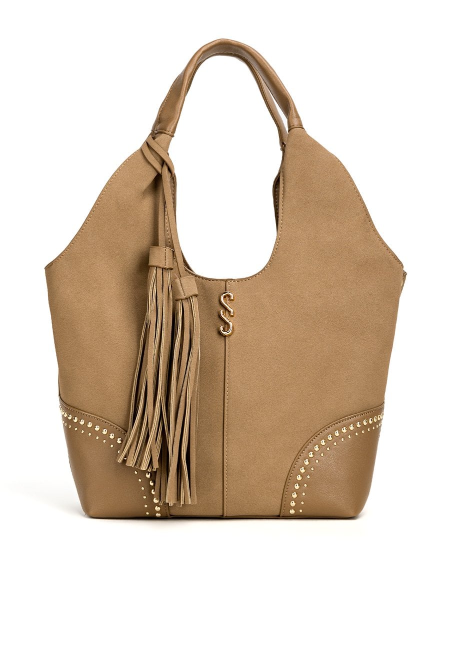 Pojemny shopper damski z dodatkową małą torebką w środku to praktyczny zestaw na co dzień, do pracy i na zakupy. Torba jest jednokomorowa, ma jasną, logowaną podszewkę oraz dodatkowe kieszonki na drobiazgi, które ułatwiają organizację. Torba zawieszona na rączkach wyróżnia się ozdobnymi frędzlami jako dodatkiem, a przód zdobią efektowne ćwieki. Torbę należy przechowywać w dołączonym woreczku. Wymiary torby dużej: 36 × 24,5 × 13 cm, wymiary torby małej: 31 × 22 × 8 cm.