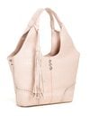 Pojemny shopper damski z dodatkową małą torebką w środku to praktyczny zestaw na co dzień, do pracy i na zakupy. Torba jest jednokomorowa, ma jasną, logowaną podszewkę oraz dodatkowe kieszonki na drobiazgi, które ułatwiają organizację. Torba zawieszona na rączkach wyróżnia się ozdobnymi frędzlami jako dodatkiem, a przód zdobią efektowne ćwieki. Torbę należy przechowywać w dołączonym woreczku. Wymiary torby dużej: 36 × 24,5 × 13 cm, wymiary torby małej: 31 × 22 × 8 cm.