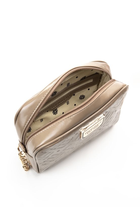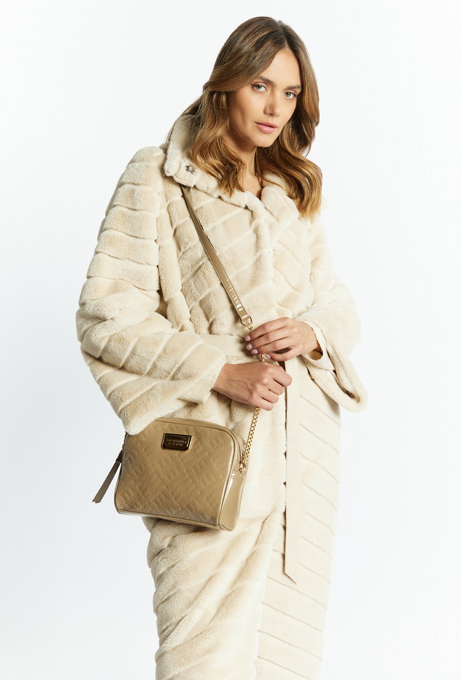 Torba damska crossbody z logo marki Monnari. Torba jednokomorowa o jasnej, logowanej podszewce z dodatkowymi kieszonkami na drobiazgi w środku. Torba zawieszona na pasku z łańcuszkiem, zapinana na suwak. Torbę należy przechowywać w dołączonym woreczku. Wymiary Torby: 23,5 cm x 19 cm x 6 cm