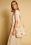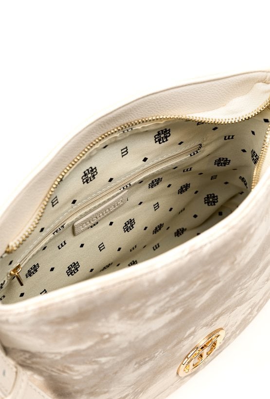 Torba damska z oryginalnym printem o wymiarach 25 cm x 28 cm x 10 cm, idealna na co dzień. Model jednokomorowy, z jasną, logowaną podszewką oraz dodatkowymi kieszonkami na drobiazgi. Zawieszona na regulowanym pasku. Torbę należy przechowywać w załączonym woreczku ochronnym.