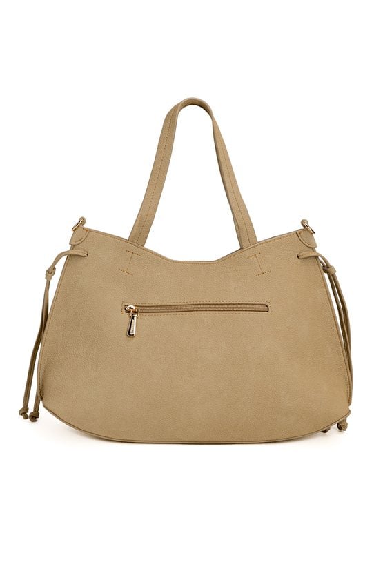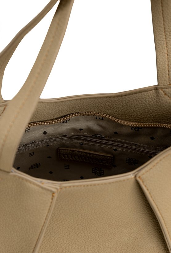 Torba damska z logo marki Monnari o wymiarach 39 × 21 × 11 cm. Jednokomorowy model z jasną, logowaną podszewką oraz dodatkowymi kieszonkami na drobiazgi. Torba zawieszona na rączkach. W zestawie regulowany, odpinany pasek.