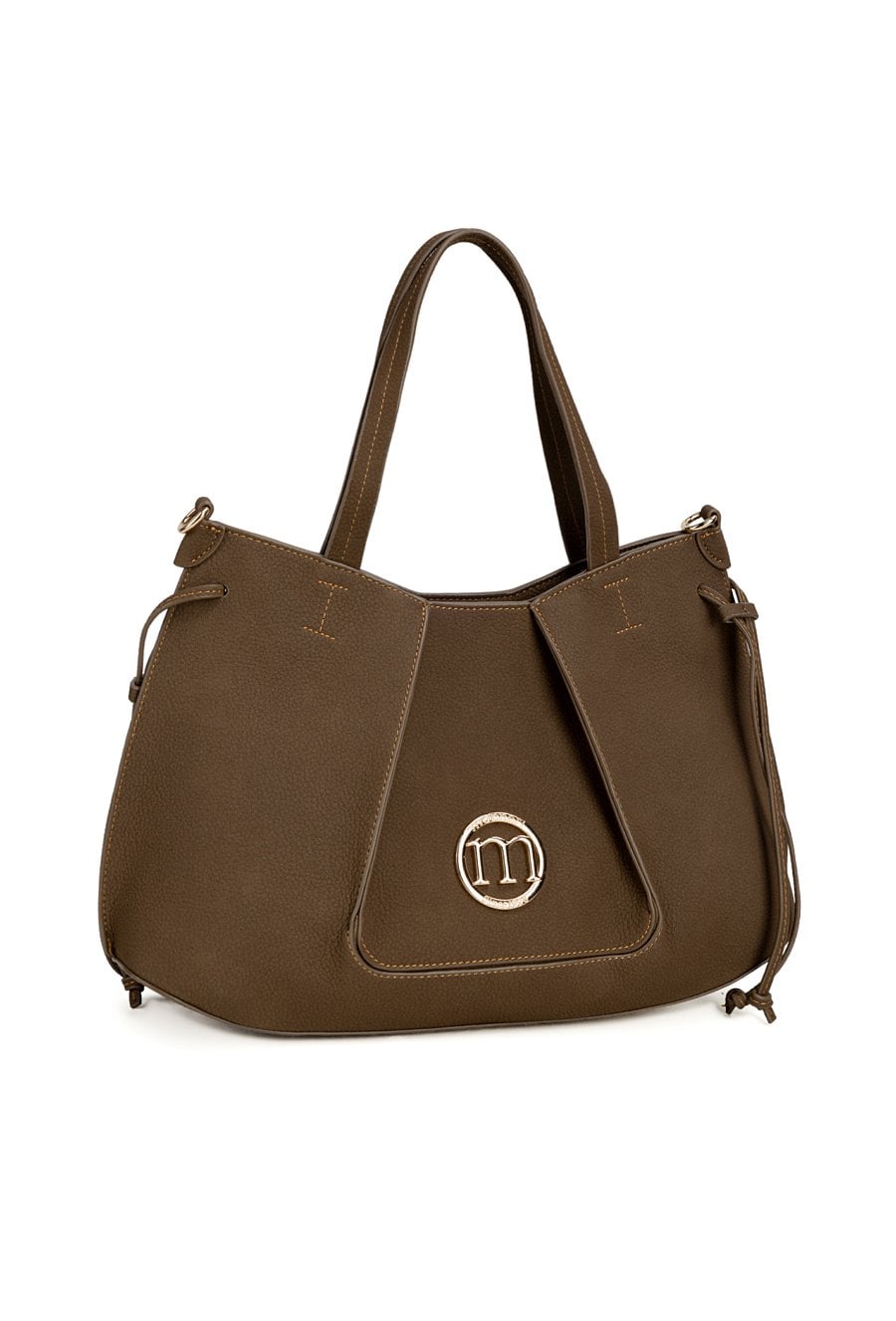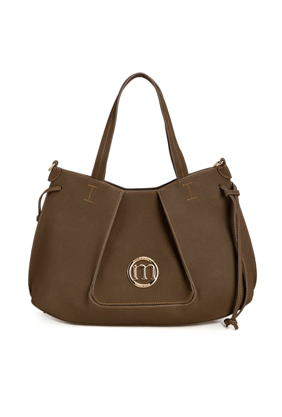 Torba damska z logo marki Monnari o wymiarach 39 × 21 × 11 cm. Jednokomorowy model z jasną, logowaną podszewką oraz dodatkowymi kieszonkami na drobiazgi. Torba zawieszona na rączkach. W zestawie regulowany, odpinany pasek.