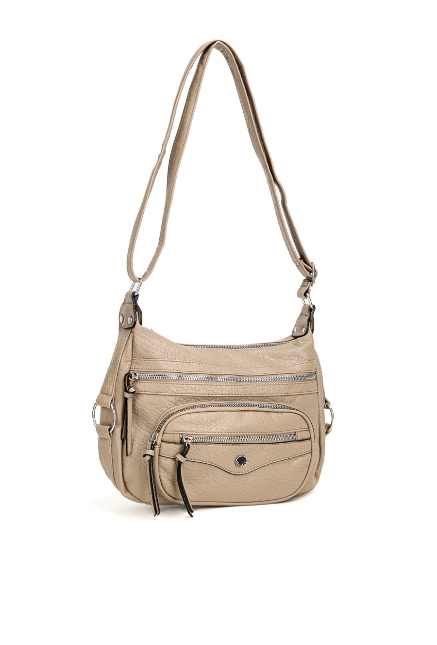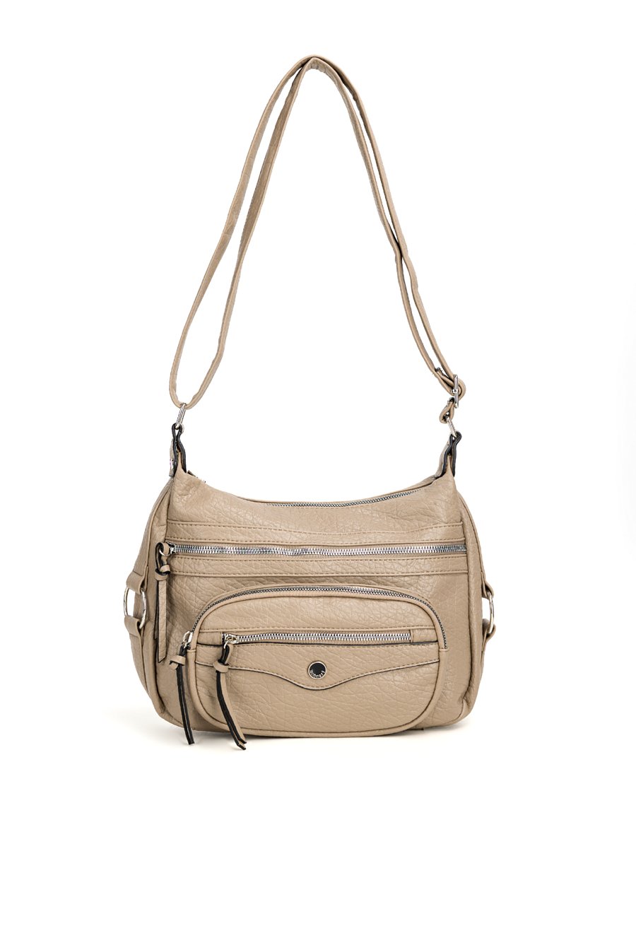 Torba damska o wymiarach 30 × 23 × 6 cm to praktyczny model na co dzień. Torba jest jednokomorowa, ma jasną, logowaną podszewkę oraz dodatkowe kieszonki na drobiazgi, które ułatwiają organizację. Torba zawieszona na regulowanym pasku wyróżnia się dodatkowymi kieszonkami z przodu, idealnymi na rzeczy, które chcesz mieć zawsze pod ręką. Torbę należy przechowywać w dołączonym woreczku.