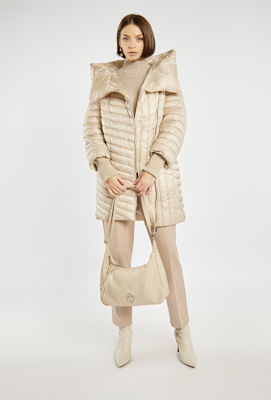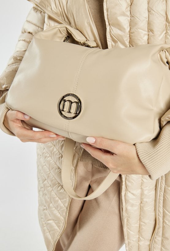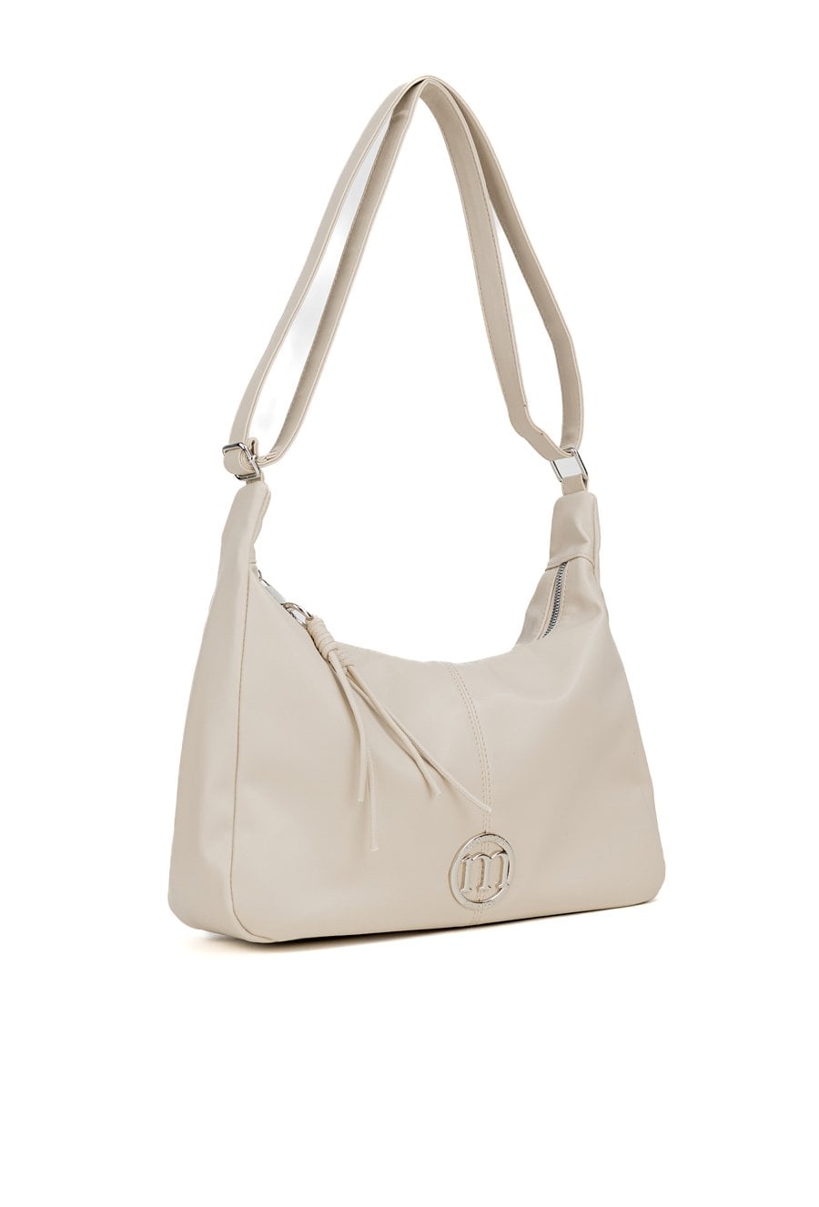 Torba damska na pasku z biżuteryjnym logo marki Monnari. Model jednokomorowy, z jasną, logowaną podszewką oraz dodatkowymi kieszonkami na drobiazgi. Idealna na co dzień, łączy elegancję i funkcjonalność. Wymiary torby: 36 cm x 22 cm x 10 cm.