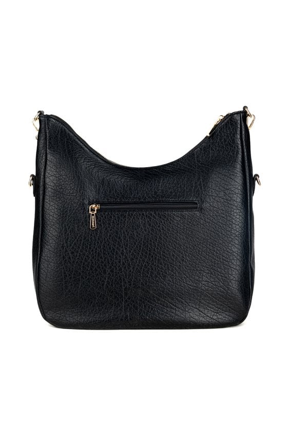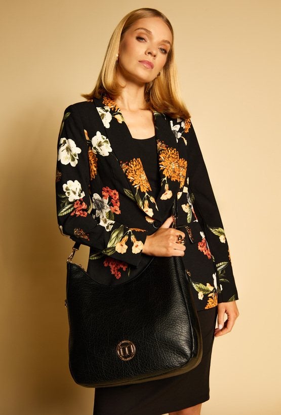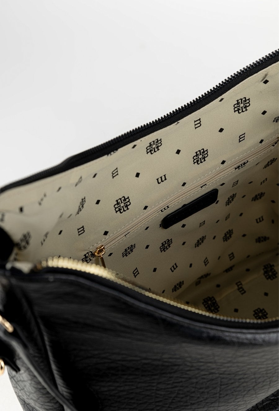 Torba damska z logo marki Monnari, łącząca elegancję z codzienną funkcjonalnością. Torba jednokomorowa, z jasną, logowaną podszewką oraz dodatkowymi kieszonkami na drobiazgi. Torba zawieszona na regulowanym pasku. Torbę należy przechowywać w załączonym woreczku. Wymiary: 37 cm x 30 cm x 10 cm.