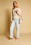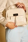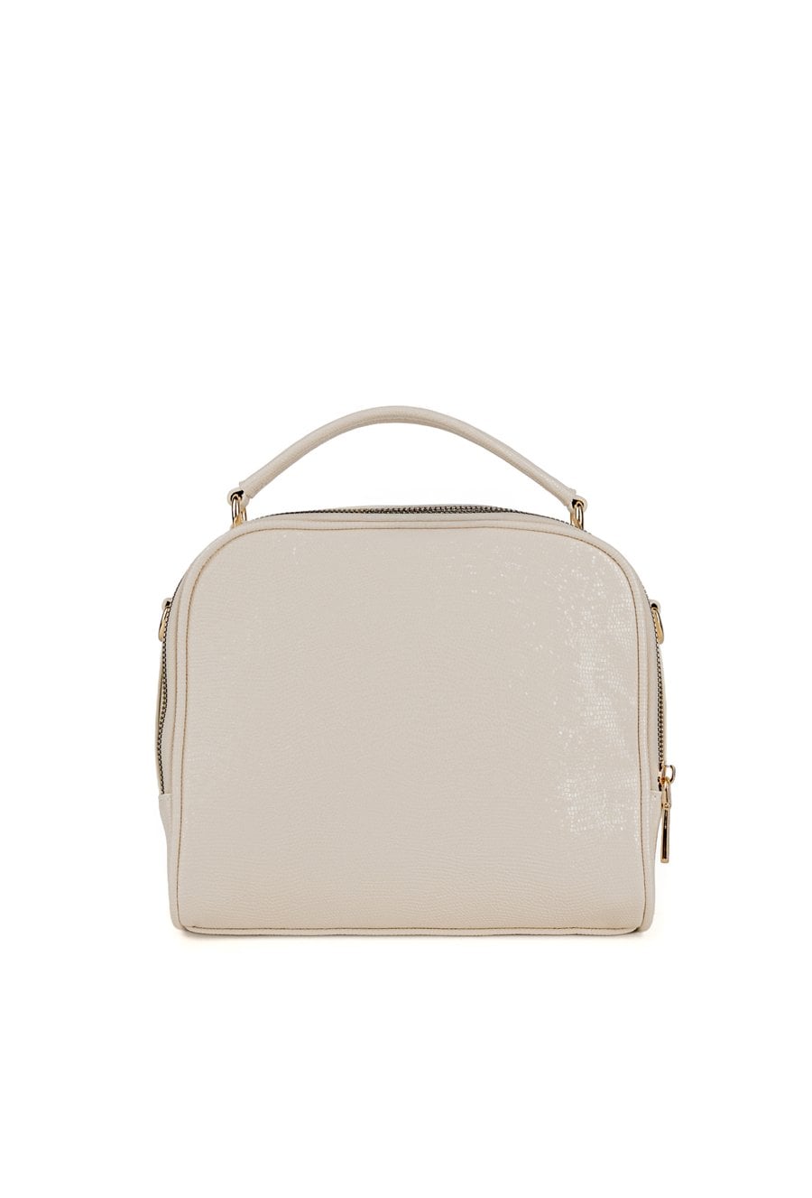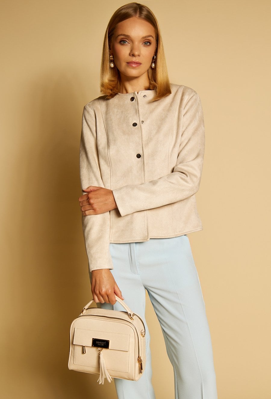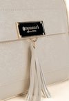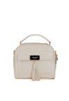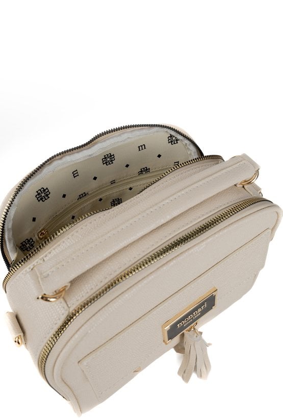 Torba damska z delikatnym wzorem. Torba dwukomorowa, z jasnymi, logowanymi podszewkami oraz dodatkowymi kieszonkami na drobiazgi. Torbę zdobią z przodu frędzle, które nadają jej lekkości i stylowego charakteru. Zawieszona na rączce, a w zestawie znajduje się regulowany pasek. Torbę należy przechowywać w załączonym woreczku. Wymiary: 22 cm x 21 cm x 10 cm