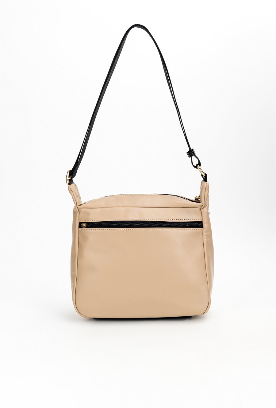 Damska torba z licznymi kieszeniami, co czyni ją wyjątkowo funkcjonalną. Torba jednokomorowa o jasnym wnętrzu z dodatkowymi kieszonkami na drobiazgi w środku. Torba zawieszona na regulowanym pasku, zapinana od góry na suwak. Torbę należy przechowywać w dołączonym woreczku. Wymiary torby: 28 cm x 24 cm x 12,5 cm.