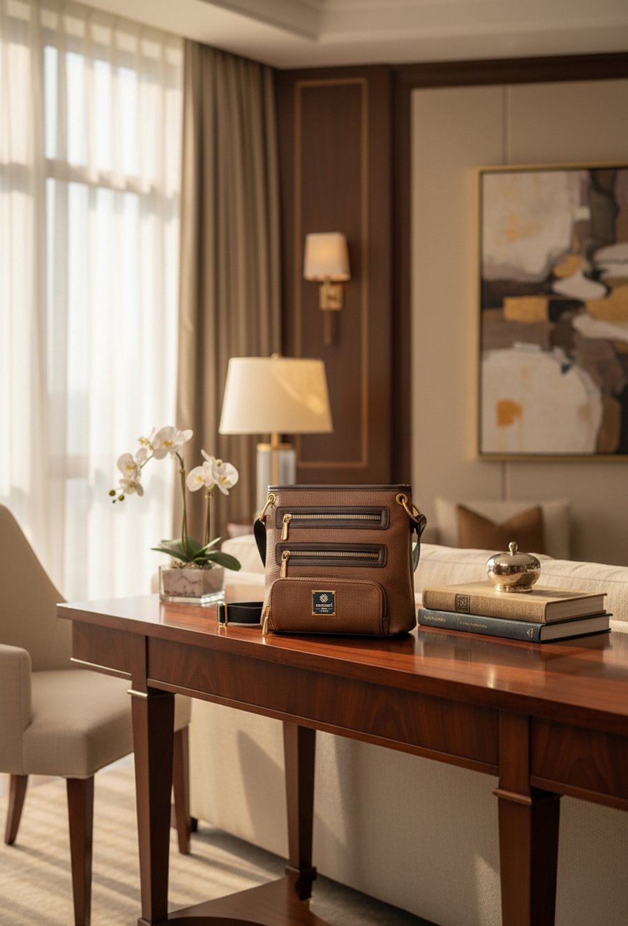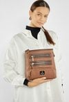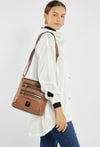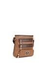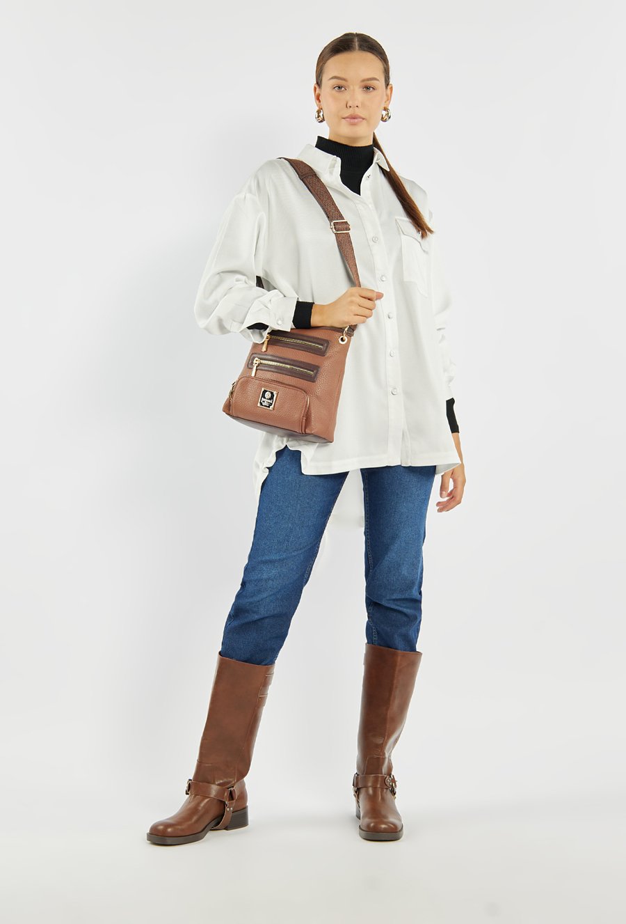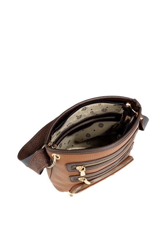 Damska torba typu crossbody to połączenie praktyczności i stylu w nowoczesnym wydaniu. Jednokomorowe wnętrze wykończone zostało jasną, logowaną podszewką oraz uzupełnione o dodatkowe kieszonki na drobiazgi, które pomagają w zachowaniu porządku. Z przodu znajdują się aż trzy funkcjonalne kieszenie, idealne na przedmioty, do których chcesz mieć szybki dostęp. Całość zawieszona jest na efektownym, wzorzystym pasku z możliwością regulacji. Torbę należy przechowywać w załączonym woreczku. Wymiary torby: 24 cm x 25 cm x 10 cm.