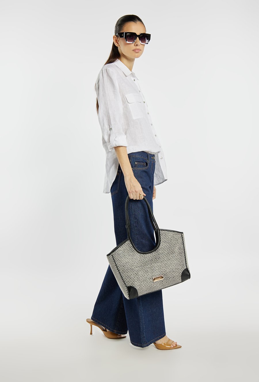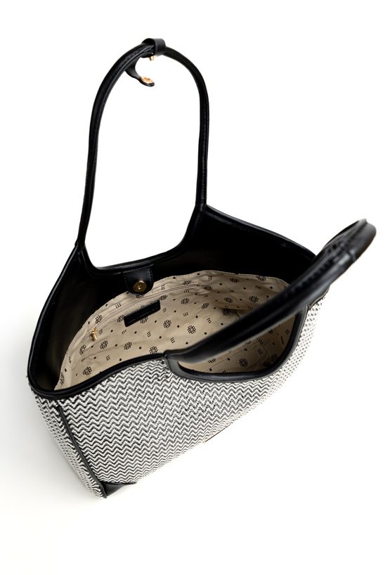 Torba damska typu koszyk z plecionką to stylowy dodatek na co dzień, idealny do miejskich i letnich stylizacji. Torba jest jednokomorowa, ma jasną, logowaną podszewkę z dodatkowymi kieszonkami na drobiazgi, rączki z przypięciem. Torbę należy przechowywać w dołączonym woreczku. Wymiary: 37 cm x 21,5 cm x 14 cm.