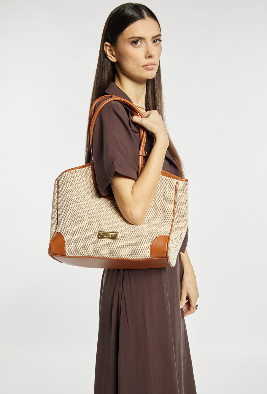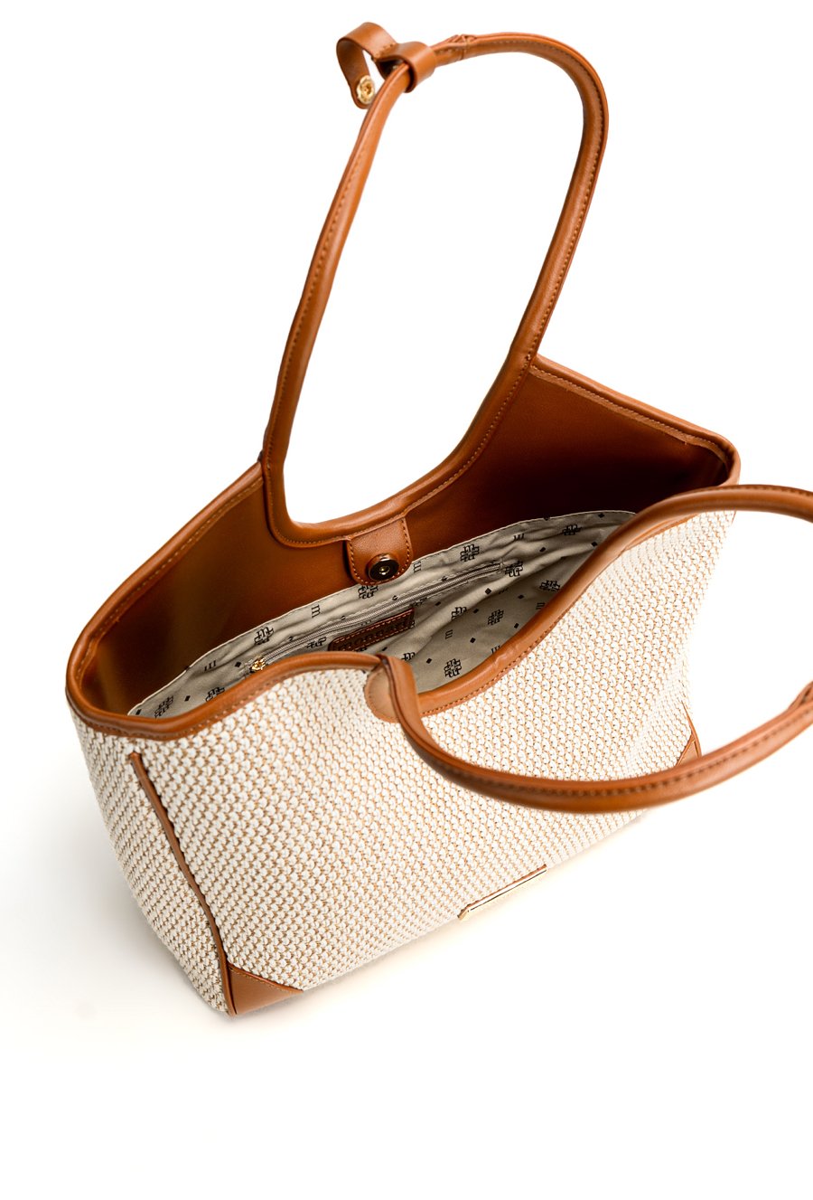 Torba damska typu koszyk z plecionką to stylowy dodatek na co dzień, idealny do miejskich i letnich stylizacji. Torba jest jednokomorowa, ma jasną, logowaną podszewkę z dodatkowymi kieszonkami na drobiazgi, rączki z przypięciem. Torbę należy przechowywać w dołączonym woreczku. Wymiary: 37 cm x 21,5 cm x 14 cm.