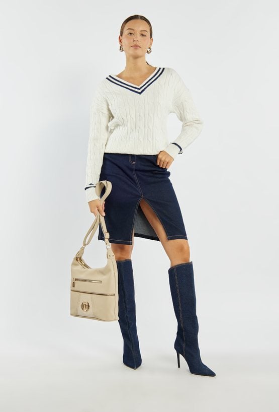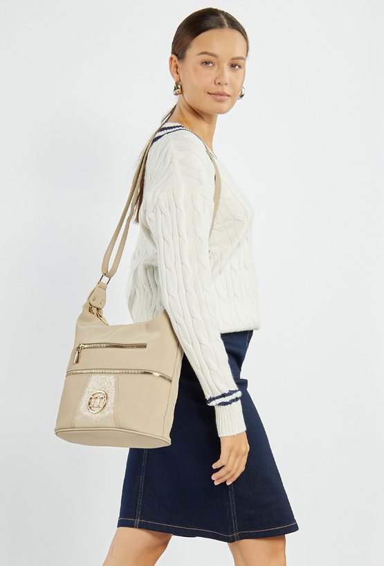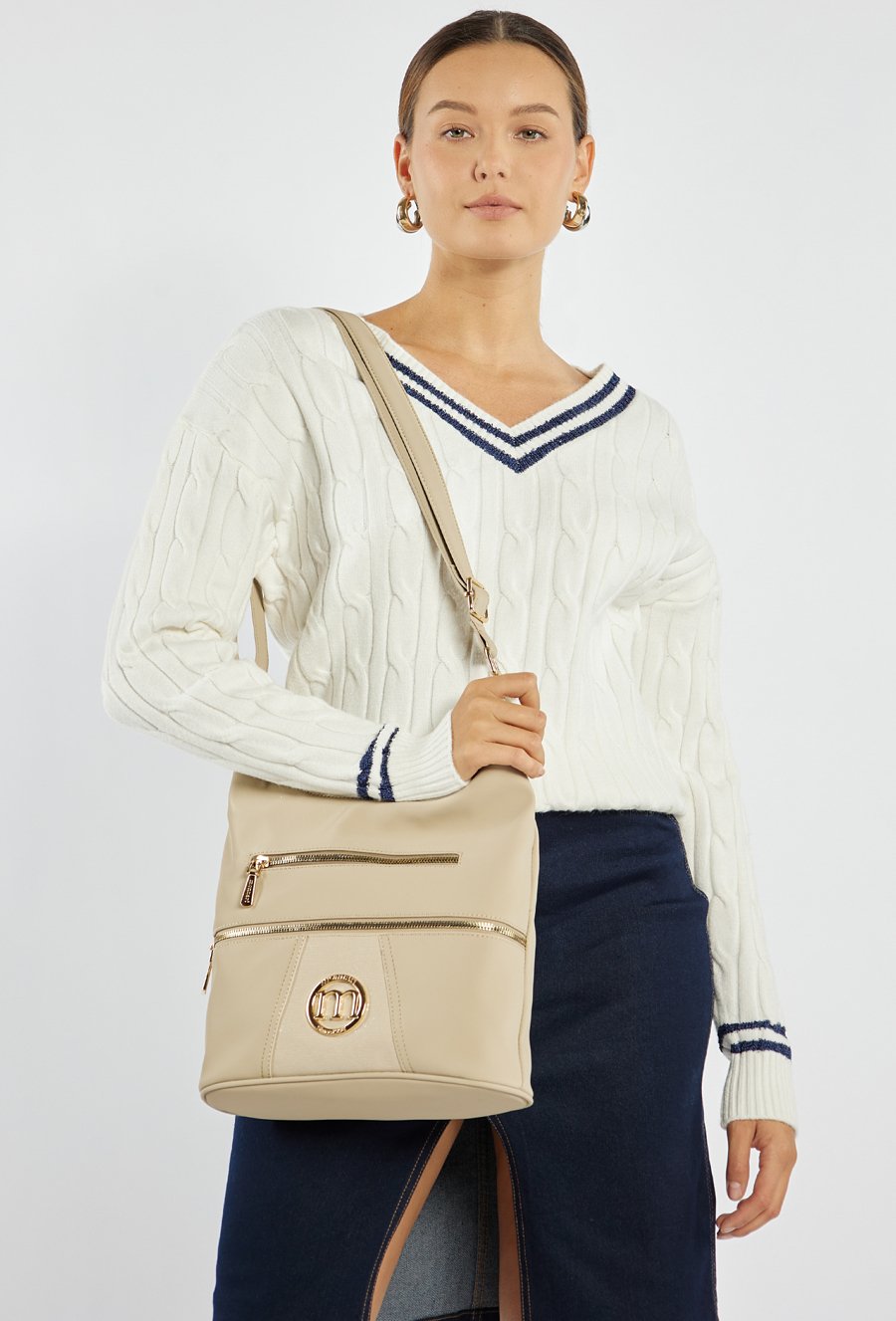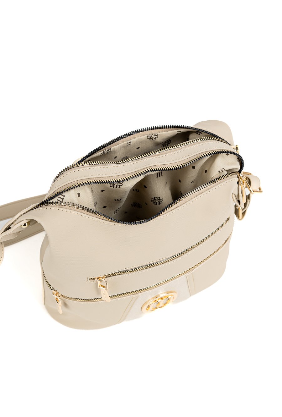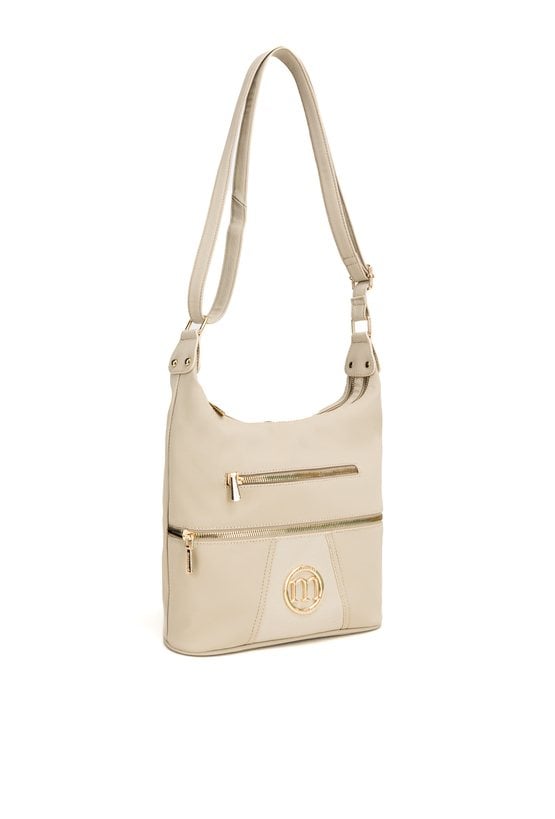 Torba damska idealna na co dzień, dwukomorowa, z jasną logowaną podszewką i dodatkowymi kieszonkami na drobiazgi, zawieszona na regulowanym pasku dla pełnej wygody noszenia, z przodu wyposażona w dwie praktyczne kieszonki ułatwiające szybki dostęp do najpotrzebniejszych rzeczy. Torbę należy przechowywać w załączonym woreczku. Wymiary: 30 cm x 23 cm x 7,5 cm.