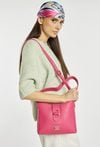 Torba damska o wymiarach 23 × 19 × 7 cm to idealny model na co dzień. Torba jest jednokomorowa, ma jasną, logowaną podszewkę oraz dodatkowe kieszonki na drobiazgi, a zapięcie na suwak i pasek z twistem zapewniają wygodę oraz bezpieczeństwo. Torba zawieszona na rączce, w zestawie ma odpinany, regulowany pasek. Torbę należy przechowywać w dołączonym woreczku.