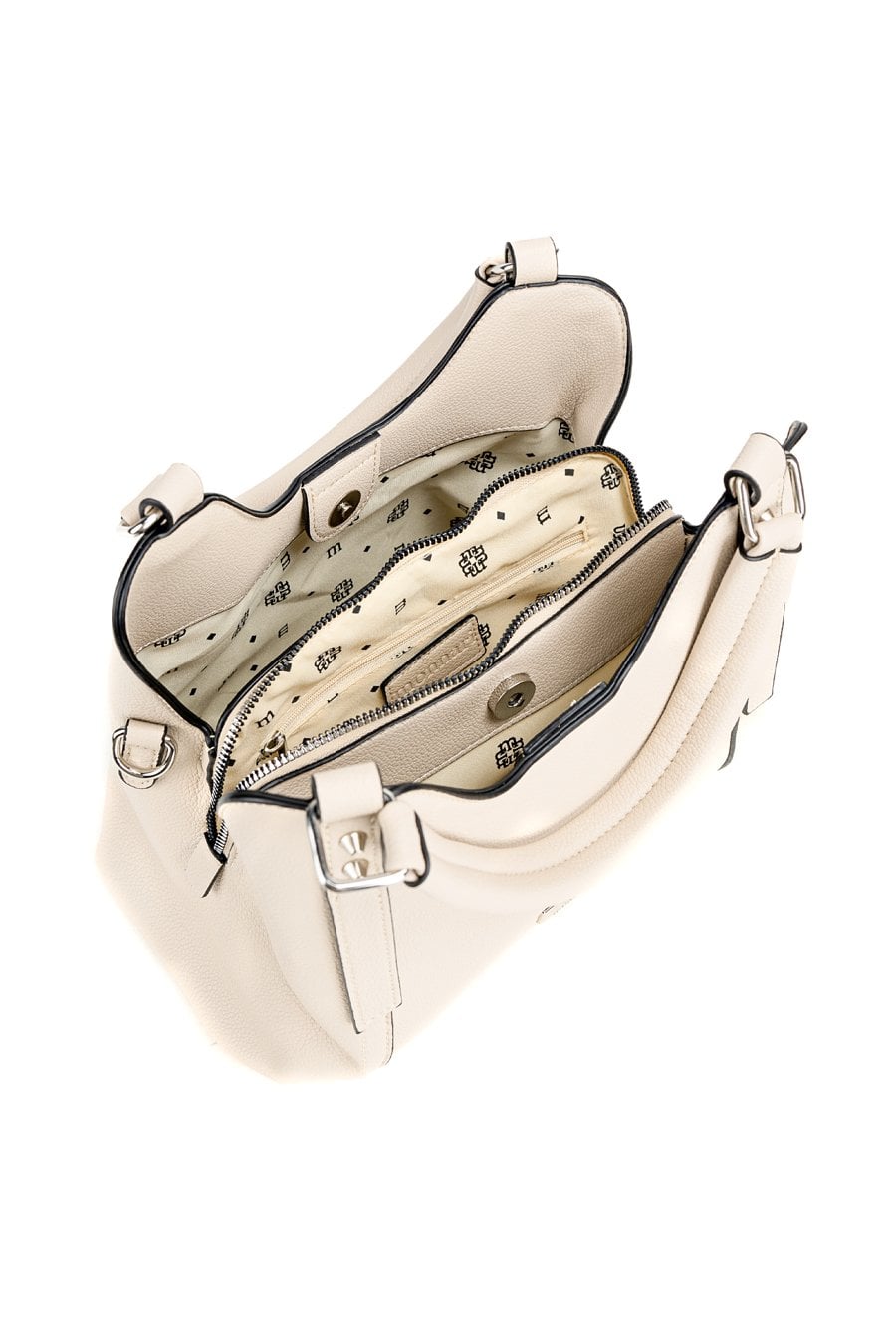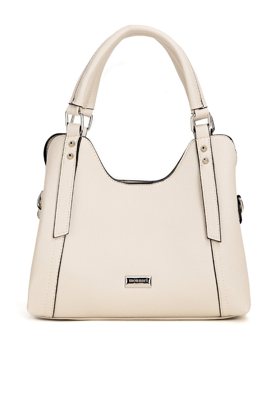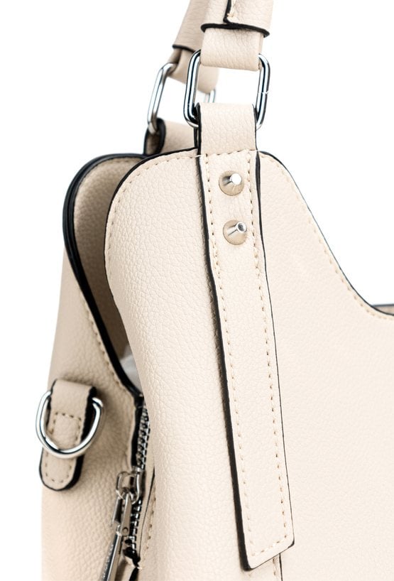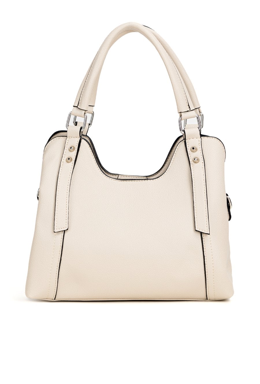Torba damska trzykomorowa z kolekcji Premium to elegancki i funkcjonalny model na co dzień. Torba ma jasne, logowane wnętrza- dwie komory zapinane na napy oraz środkową komorę na suwak, co ułatwia organizację i bezpieczne przechowywanie rzeczy. Torba zawieszona na rączkach, w zestawie ma regulowany pasek. Torbę należy przechowywać w dołączonym woreczku. Wymiary: 28 cm x 18 cm x 15 cm.