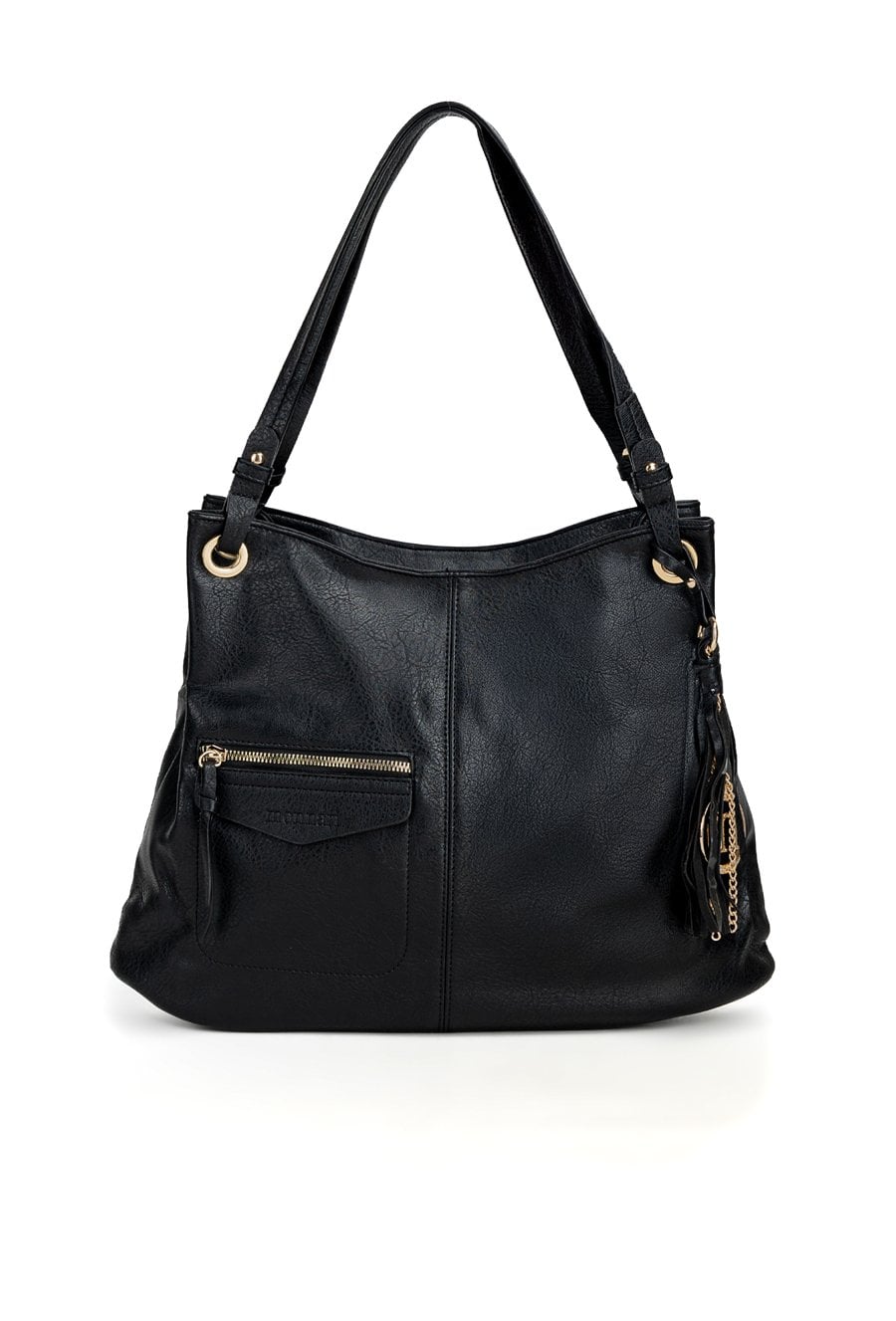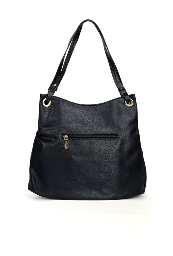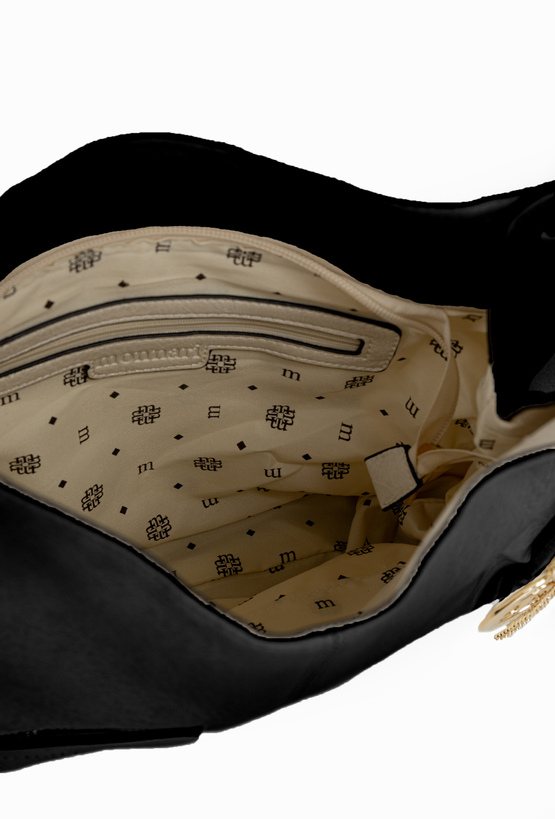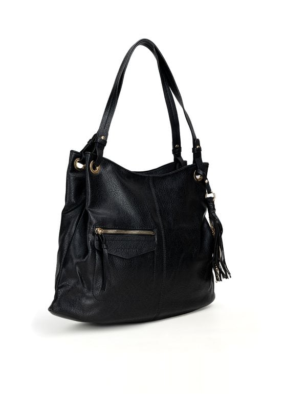 Torba damska o wymiarach 38 × 30,5 × 8 cm to praktyczny i stylowy model na co dzień. Torba jest jednokomorowa, ma jasną, logowaną podszewkę oraz dodatkowe kieszonki na drobiazgi, które ułatwiają organizację. Torba wyróżnia się efektowną przywieszką z logo marki z frędzlami i łańcuszkami, która dodaje jej charakteru. Torba zawieszona na rączce. Torbę należy przechowywać w dołączonym woreczku.