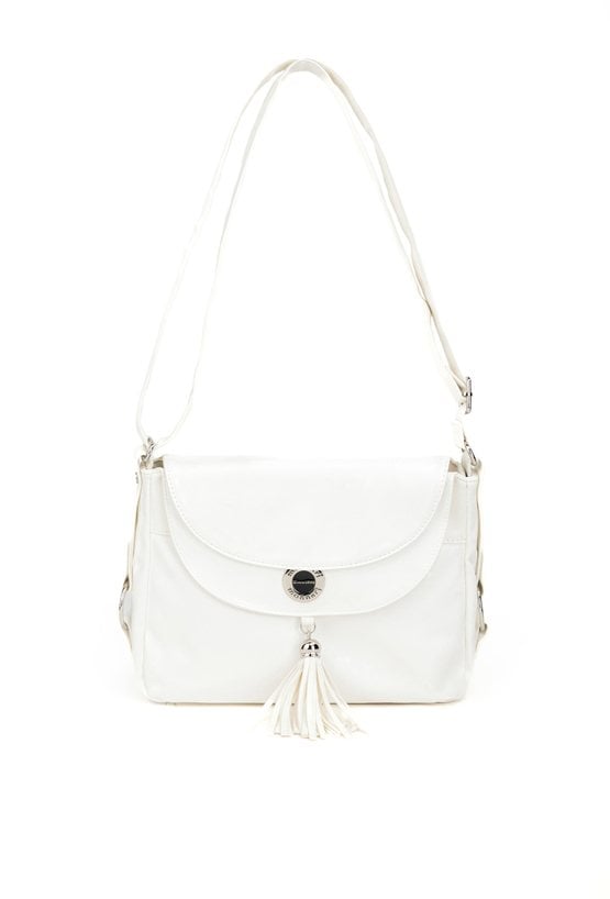 Torba damska o wymiarach 30 × 22,5 × 6 cm to stylowy model na co dzień i na wyjścia. Torba jest jednokomorowa, ma jasną, logowaną podszewkę oraz dodatkowe kieszonki na drobiazgi, a zapięcie na suwak i klapę z napą zapewnia wygodę oraz bezpieczeństwo. Torba zawieszona na regulowanym pasku wyróżnia się modnymi frędzlami, które dodają jej charakteru. Torbę należy przechowywać w dołączonym woreczku.