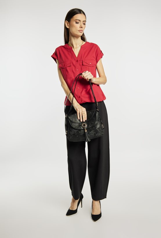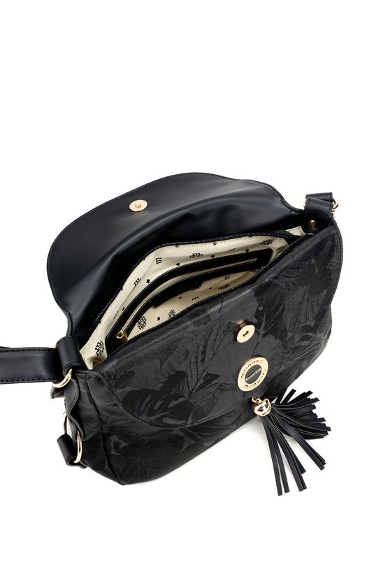 Torba damska o wymiarach 30 × 22,5 × 6 cm to stylowy model na co dzień i na wyjścia. Torba jest jednokomorowa, ma jasną, logowaną podszewkę oraz dodatkowe kieszonki na drobiazgi, a zapięcie na suwak i klapę z napą zapewnia wygodę oraz bezpieczeństwo. Torba zawieszona na regulowanym pasku wyróżnia się modnymi frędzlami, które dodają jej charakteru. Torbę należy przechowywać w dołączonym woreczku.