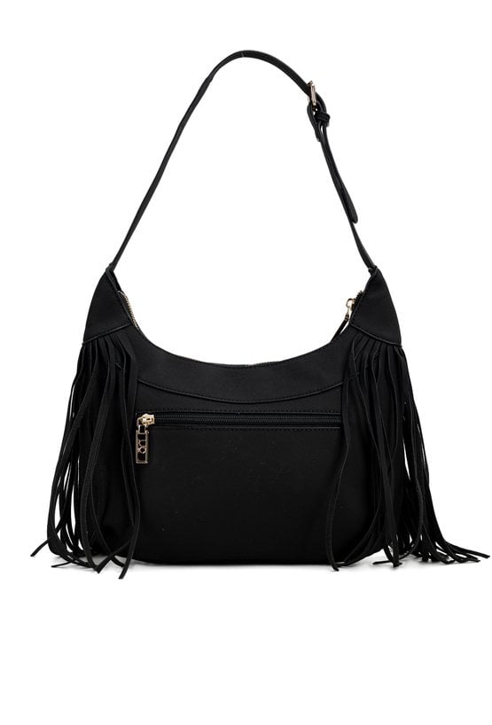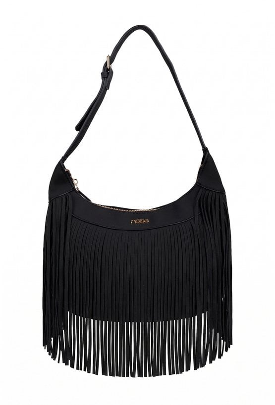 Torba damska z frędzlami, idealna na co dzień. Jednokomorowy model z jasną, logowaną podszewką oraz dodatkowymi kieszonkami na drobiazgi. Torebka zawieszona na regulowanej rączce. Frędzle nadają jej ciekawego charakteru. Torbę należy przechowywać w dołączonym woreczku. Wymiary: 32 cm x 19 cm x 5 cm