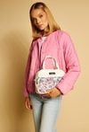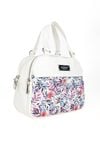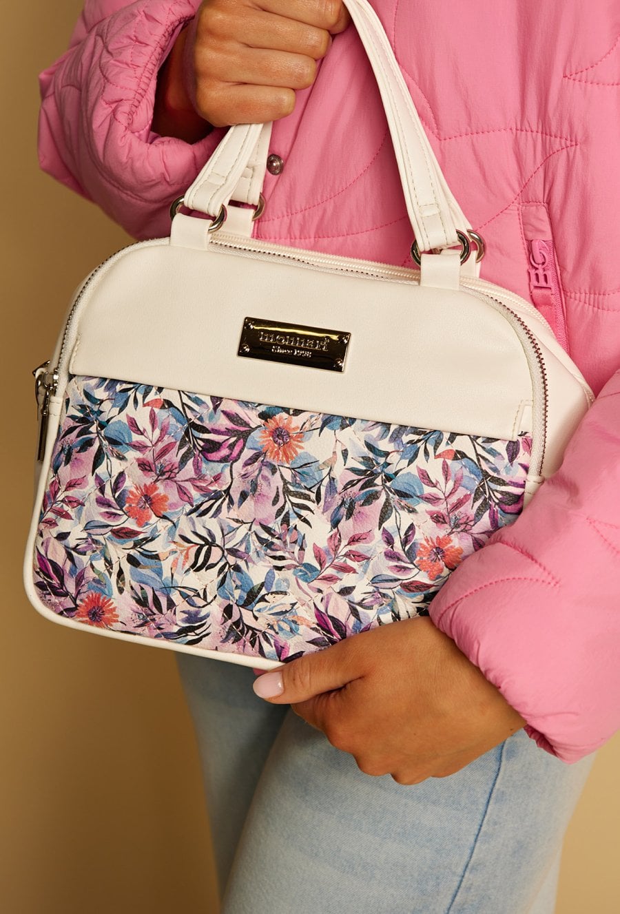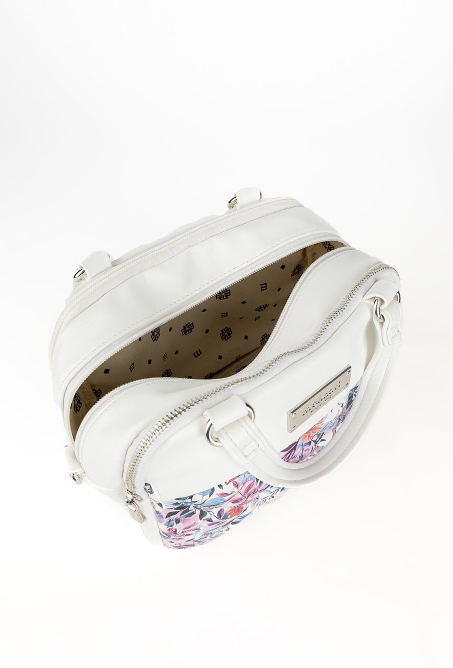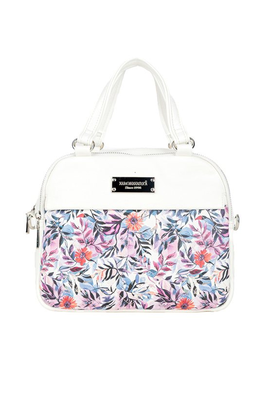 Torba damska na co dzień z kwiatowym motywem, idealna do wiosennych stylizacji. Torba trzykomorowa, z jasnymi, logowanymi podszewkami oraz dodatkowymi kieszonkami na drobiazgi, które ułatwiają organizację. Torba zawieszona na rączkach, a w zestawie znajduje się regulowany pasek Torbę należy przechowywać w załączonym woreczku. Wymiary: 26 cm x 20 cm x 11 cm.