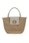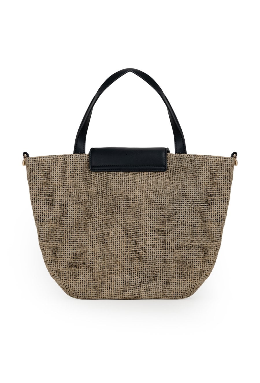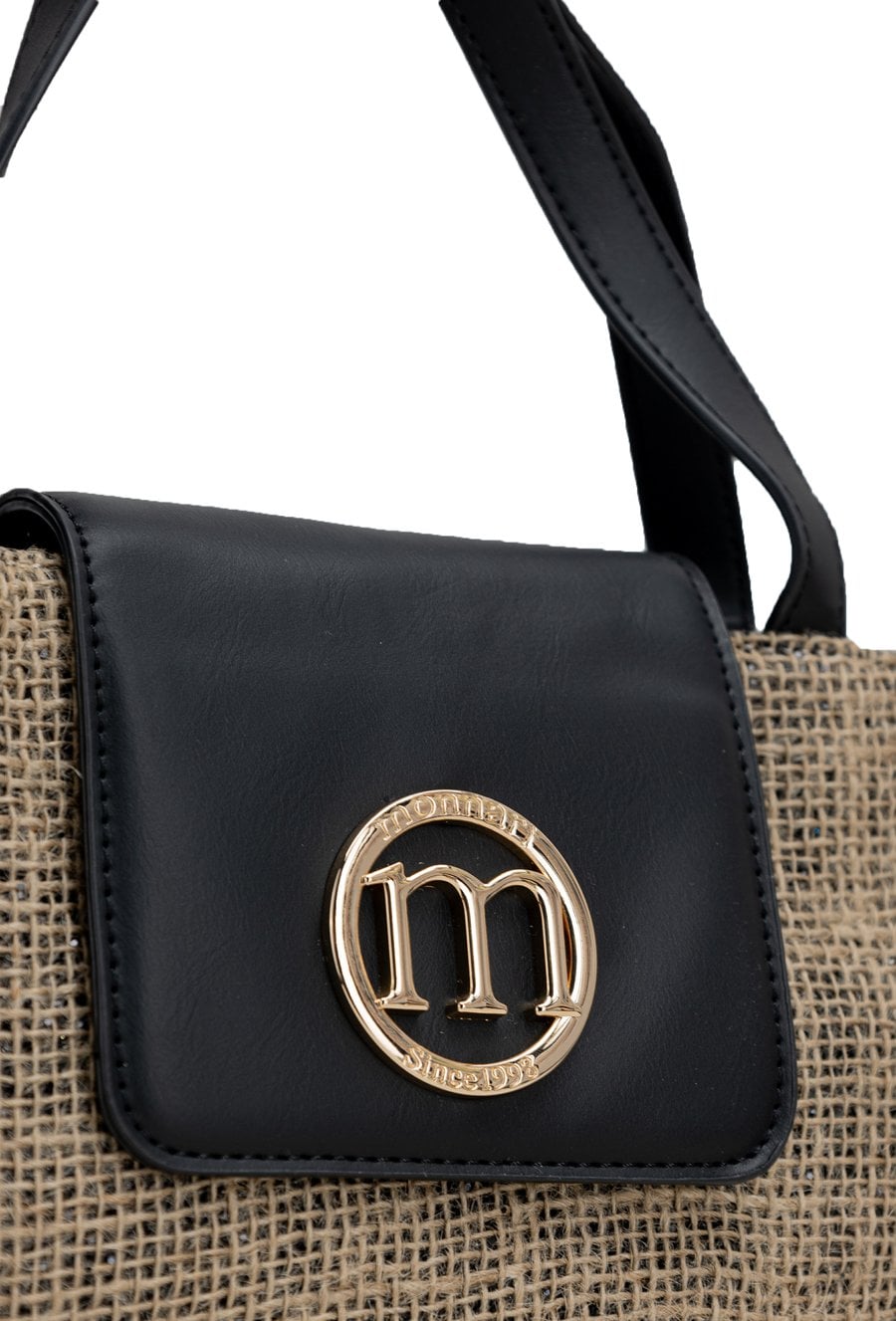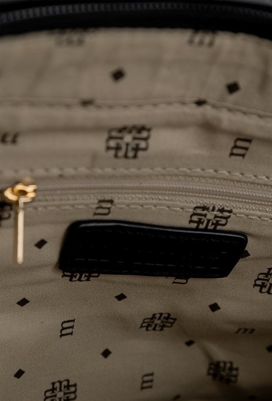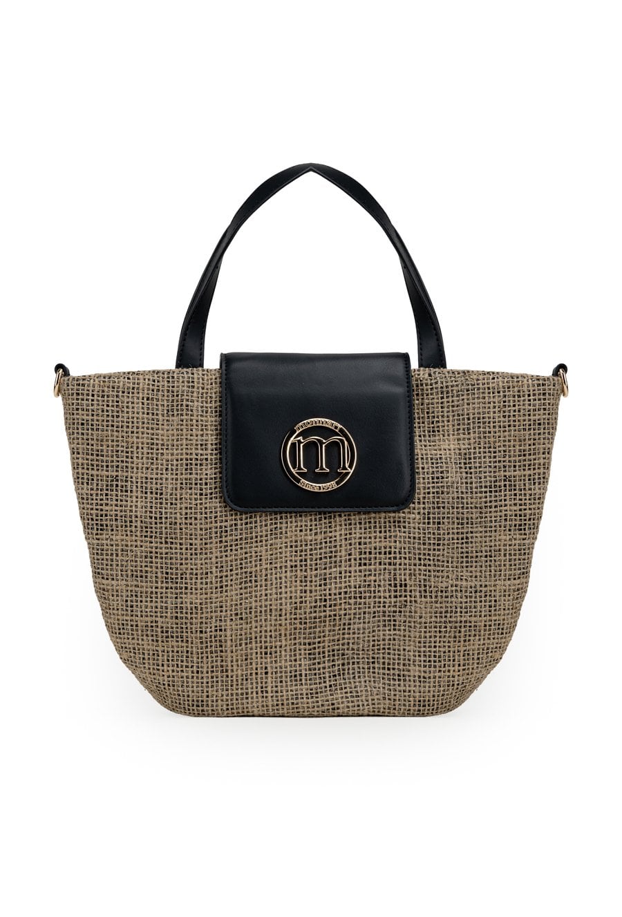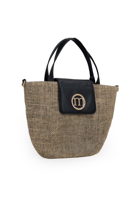 Torba damska typu koszyk z połyskującą plecionką. Jednokomorowy model z jasną, logowaną podszewką oraz dodatkowymi kieszonkami na drobiazgi. Torba zawieszona na rączkach. W zestawie regulowany pasek z możliwością odpięcia. Torbę należy przechowywać w dołączonym woreczku. Wymiary: 32 cm x 23 cm x 10 cm