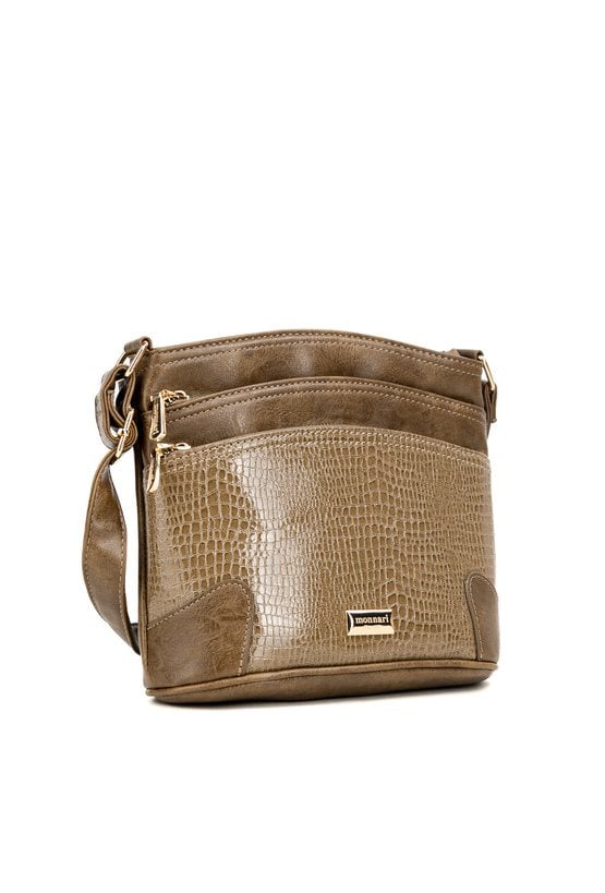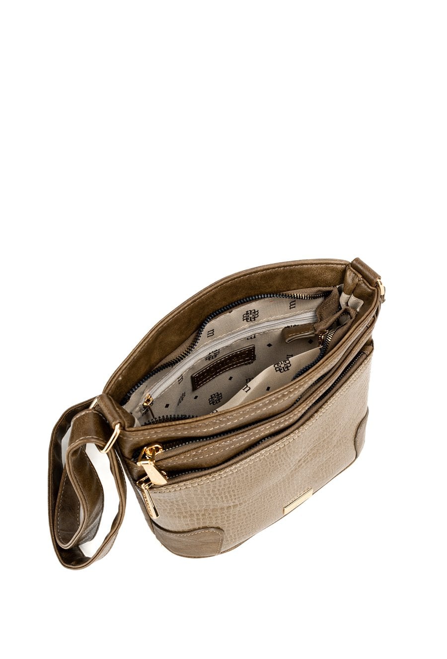 Torba damska o wymiarach: 25 cm x 20 cm x 5 cm. Model jednokomorowy z jasnym, logowanym wnętrzem oraz dodatkowymi kieszonkami, idealnymi na drobiazgi. Torba zawieszona na regulowanym pasku, z przodu ozdobiona subtelnym wzorem. Praktycznym uzupełnieniem są dwie kieszonki na przednim panelu, zapinane na suwak. Torbę należy przechowywać w dołączonym woreczku.