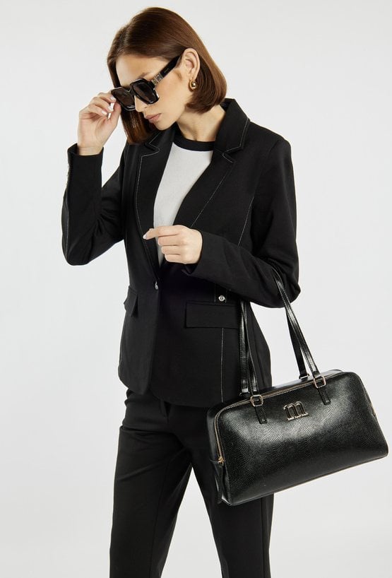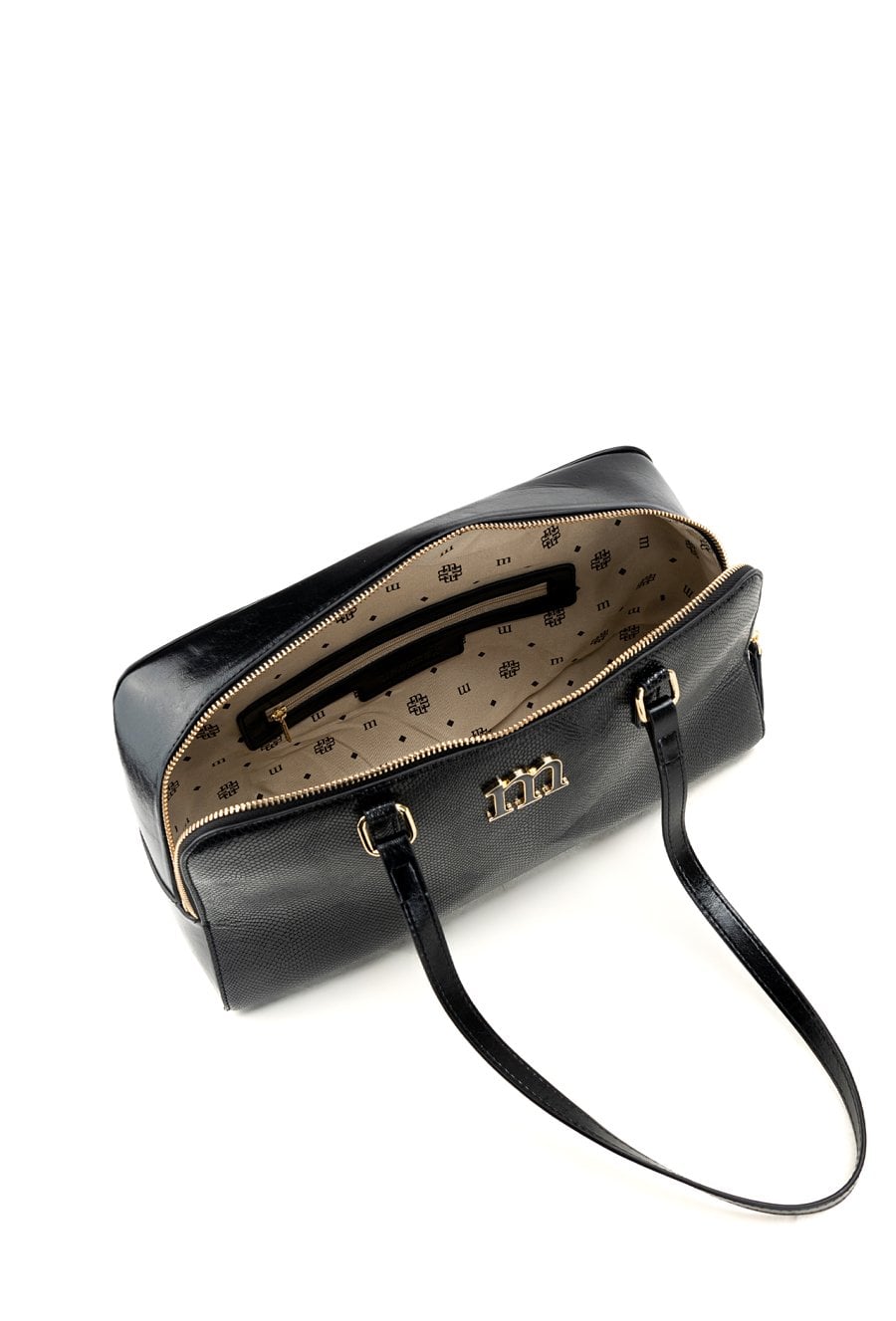 Torba damska z logowanym wzorem z przodu to stylowy dodatek, który świetnie uzupełni codzienne stylizacje. Torba jest jednokomorowa, wykończona jasną, logowaną podszewką oraz dodatkowymi kieszonkami na drobiazgi. Torba zawieszona na wygodnych rączkach. Torbę należy przechowywać w dołączonym woreczku. Wymiary: 34 cm x 20,5 cm x 10 cm.