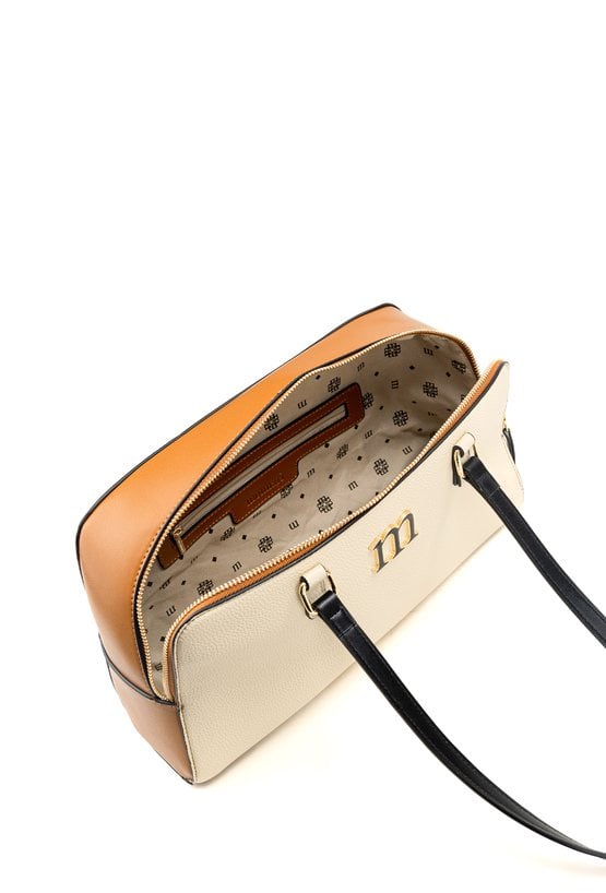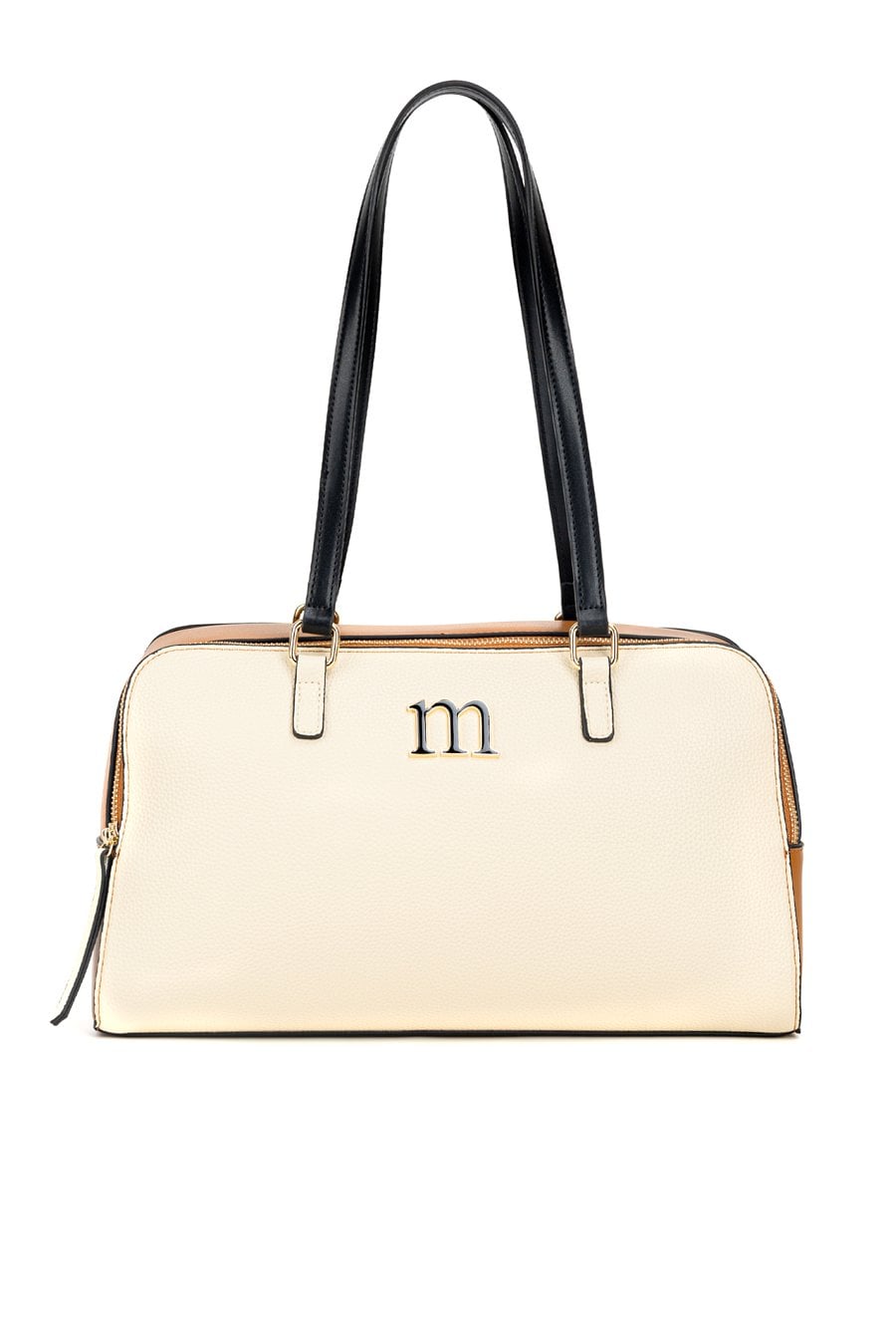 Torba damska z logowanym wzorem z przodu to stylowy dodatek, który świetnie uzupełni codzienne stylizacje. Torba jest jednokomorowa, wykończona jasną, logowaną podszewką oraz dodatkowymi kieszonkami na drobiazgi. Torba zawieszona na wygodnych rączkach. Torbę należy przechowywać w dołączonym woreczku. Wymiary: 34 cm x 20,5 cm x 10 cm.