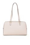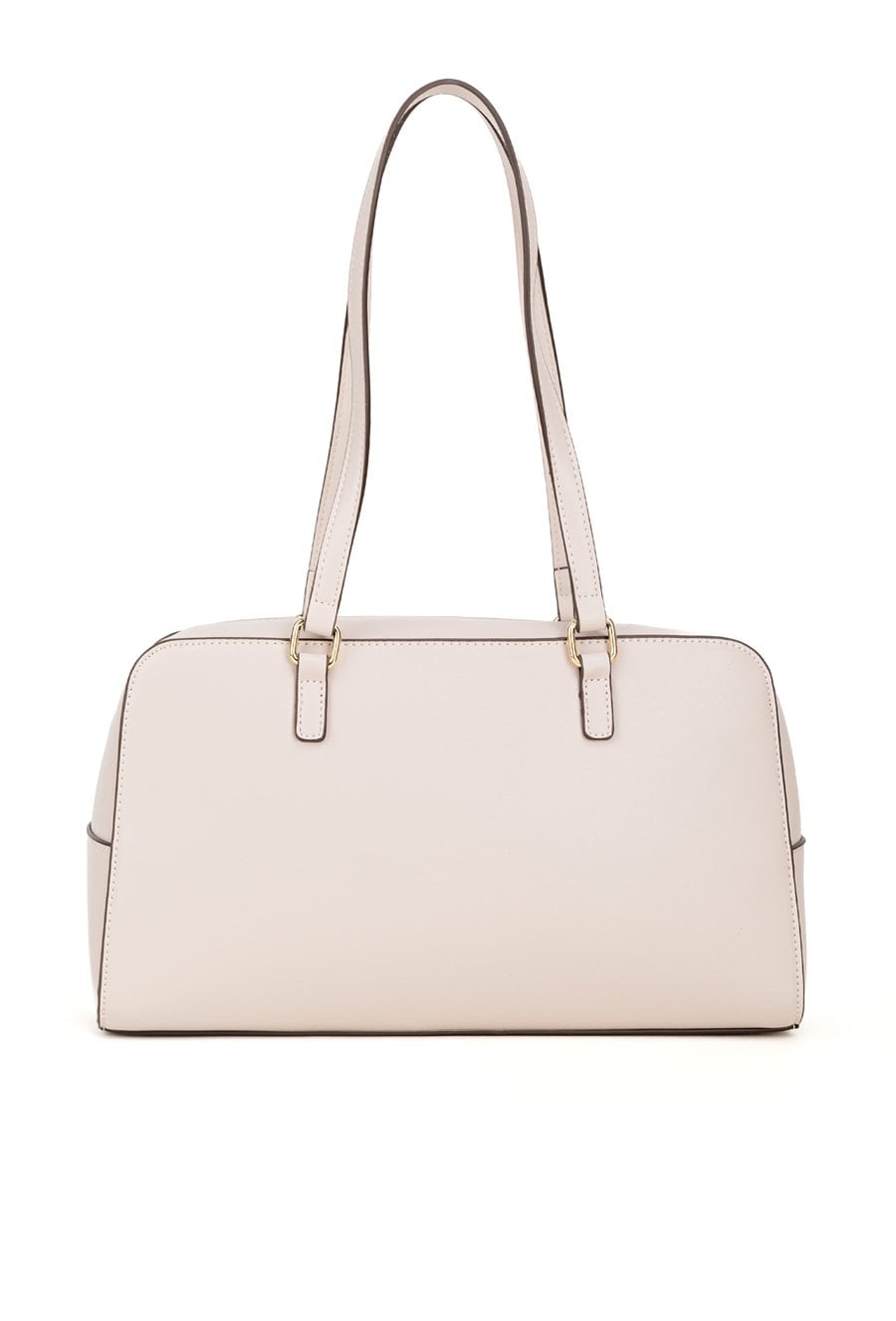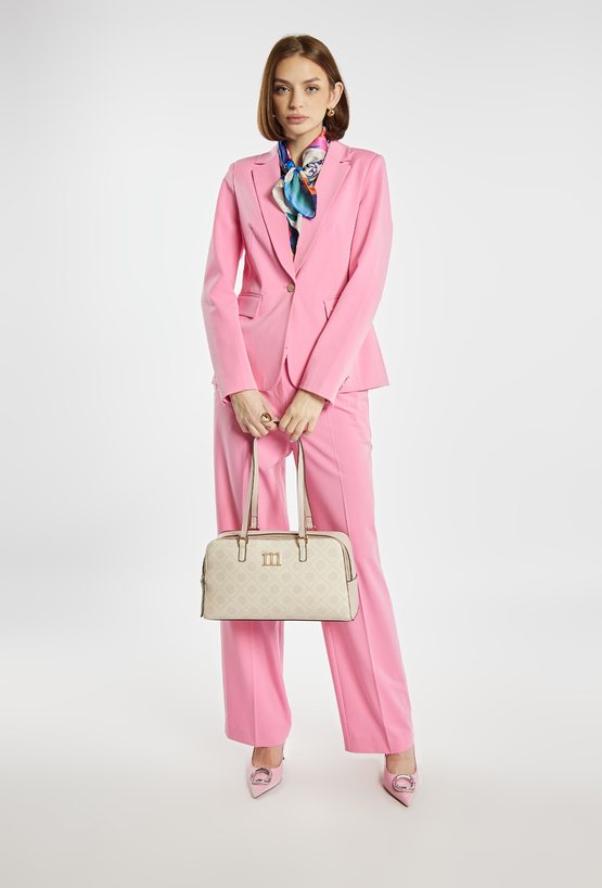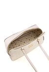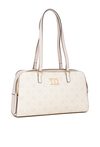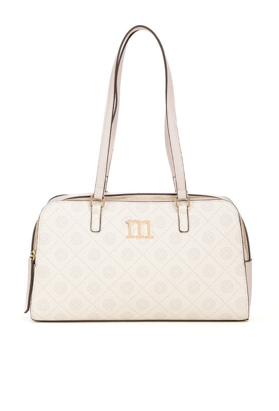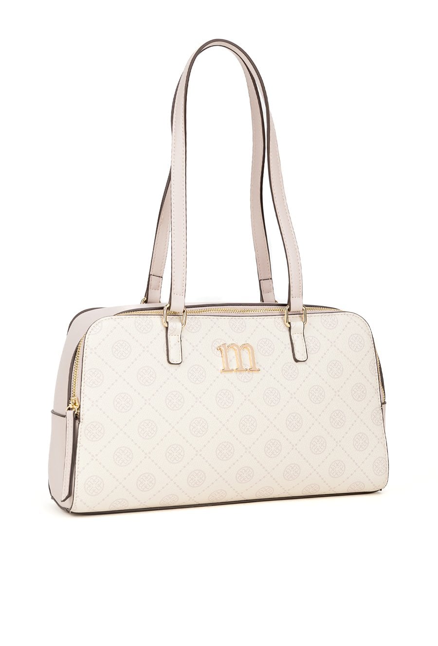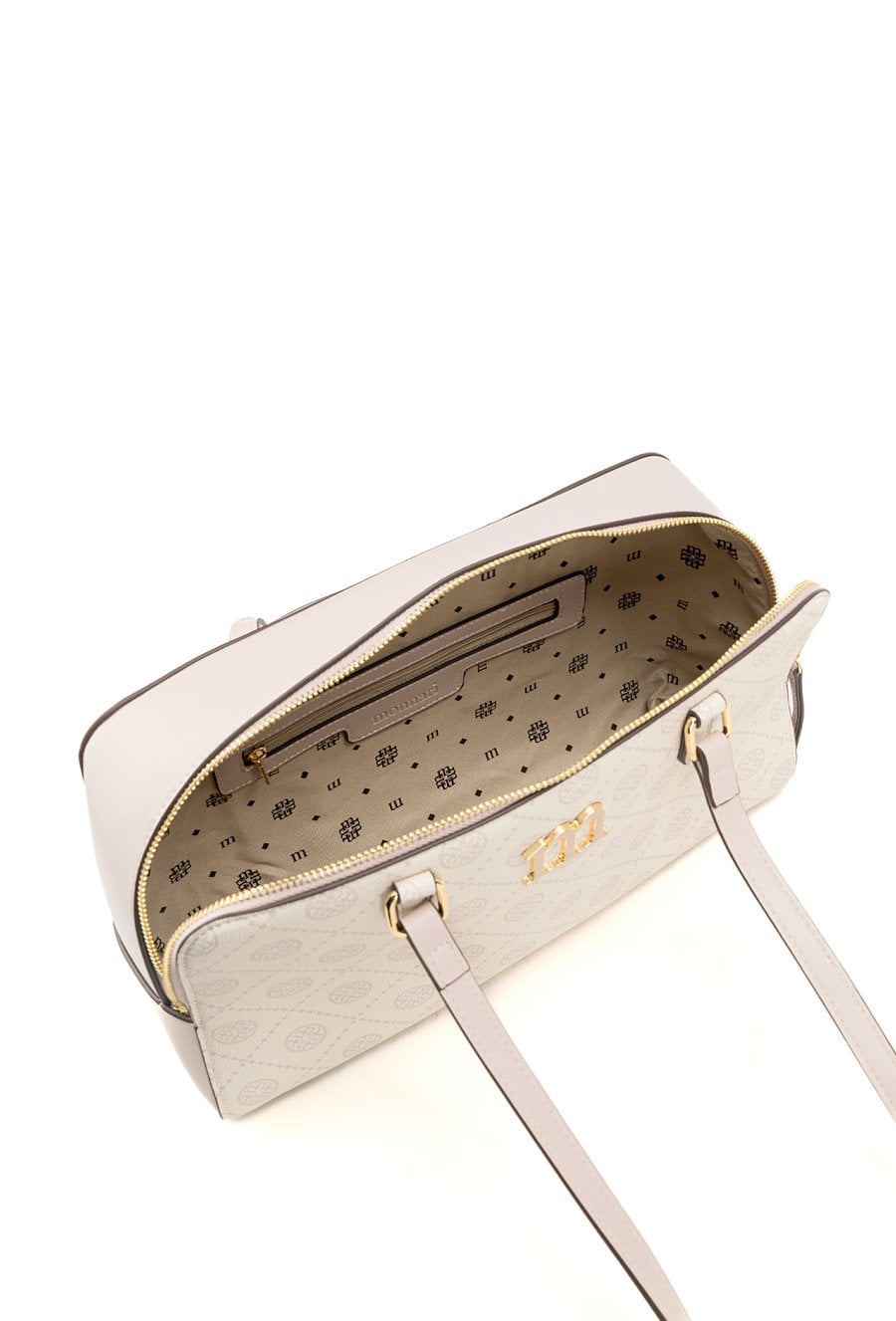 Torba damska z logowanym wzorem z przodu to stylowy dodatek, który świetnie uzupełni codzienne stylizacje. Torba jest jednokomorowa, wykończona jasną, logowaną podszewką oraz dodatkowymi kieszonkami na drobiazgi. Torba zawieszona na wygodnych rączkach. Torbę należy przechowywać w dołączonym woreczku. Wymiary: 34 cm x 20,5 cm x 10 cm.
