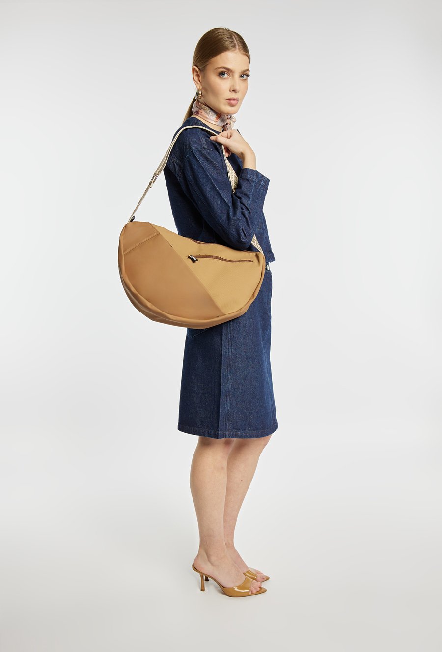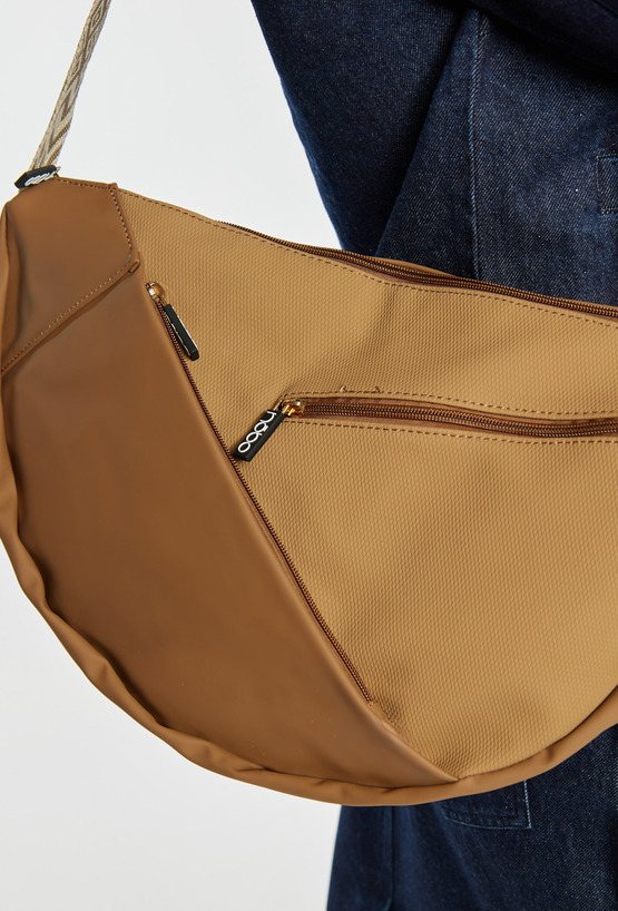 Torba damska typu crossbody z asymetrycznymi kieszonkami, które nadają jej nowoczesnego charakteru. Torebka jednokomorowa z jasną, logowaną podszewką oraz dodatkowymi kieszonkami na drobiazgi. Torba zawieszona na wzorzystym, regulowanym pasku, idealna do codziennych stylizacji. Wymiary: 42,5 cm x 30 cm x 6 cm.