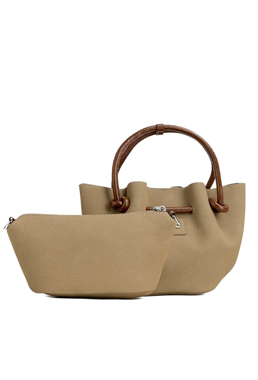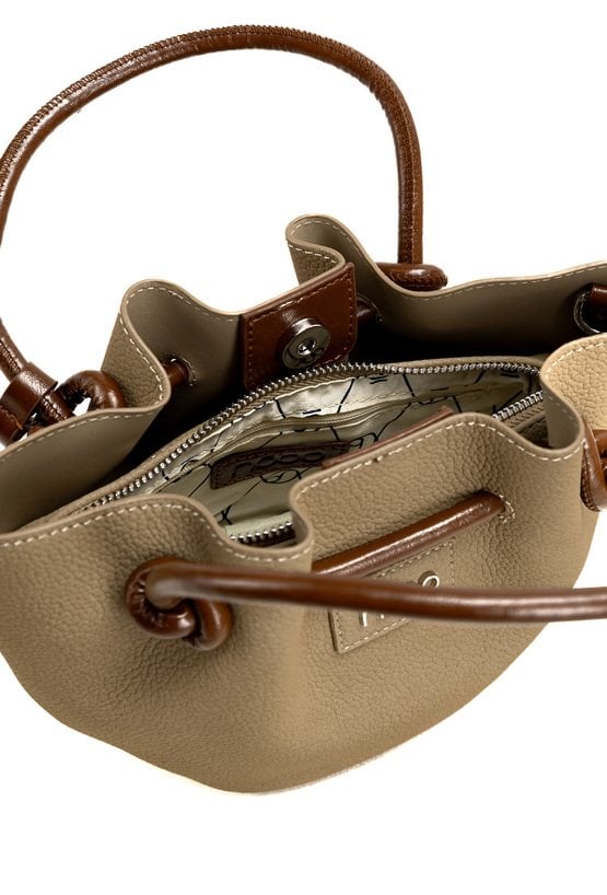 Mała torebka damska o wymiarach 26 × 17 × 9,5 cm. Jednokomorowy model zapinany na napę, zawieszony na rączkach z zapięciem. Atutem jest dołączona mała torebka z odpinanym paskiem. Torbę należy przechowywać w dołączonym woreczku.