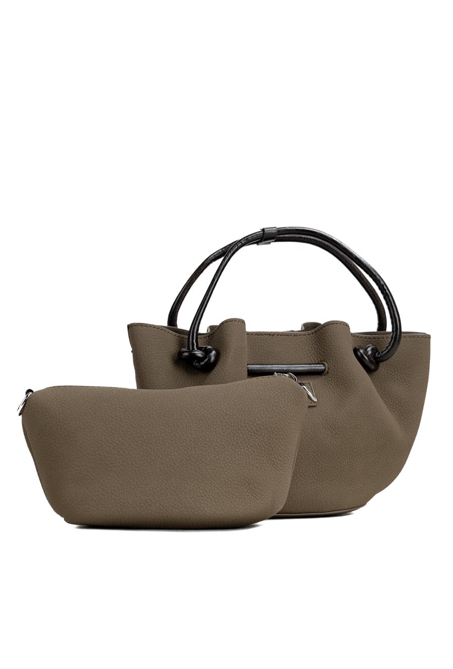 Mała torebka damska o wymiarach 26 × 17 × 9,5 cm. Jednokomorowy model zapinany na napę, zawieszony na rączkach z zapięciem. Atutem jest dołączona mała torebka z odpinanym paskiem. Torbę należy przechowywać w dołączonym woreczku.