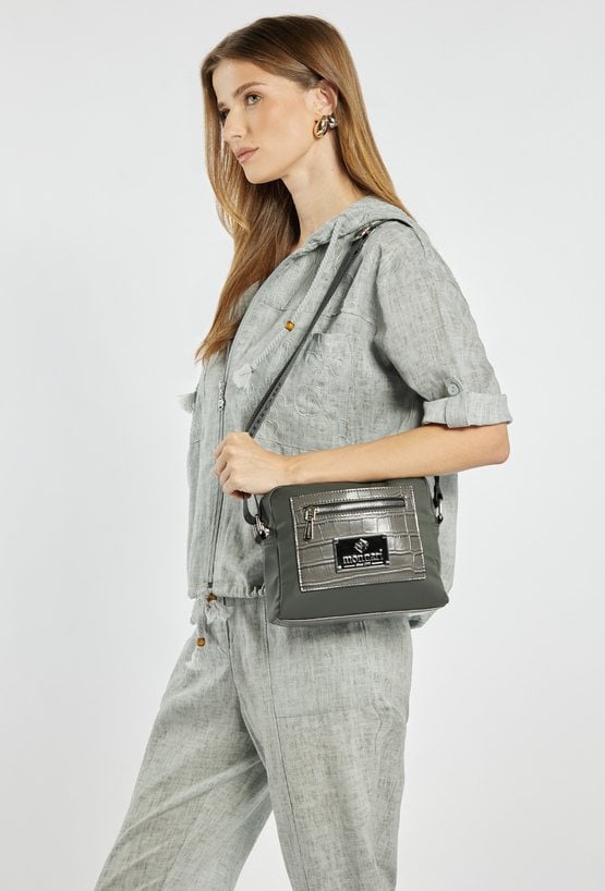 Funkcjonalna torba damska zawieszona na regulowanym pasku, który zapewnia wygodę noszenia na co dzień. Torba jednokomorowa o jasnej logowanej podszewce z dodatkowymi kieszonkami na drobiazgi. Z przodu torby umieszczono dodatkową kieszonkę – idealną na rzeczy, do których chcesz mieć szybki dostęp. Torebkę należy przechowywać w dołączonym woreczku. Wymiary: 21 cm x 20 cm x 9 cm.