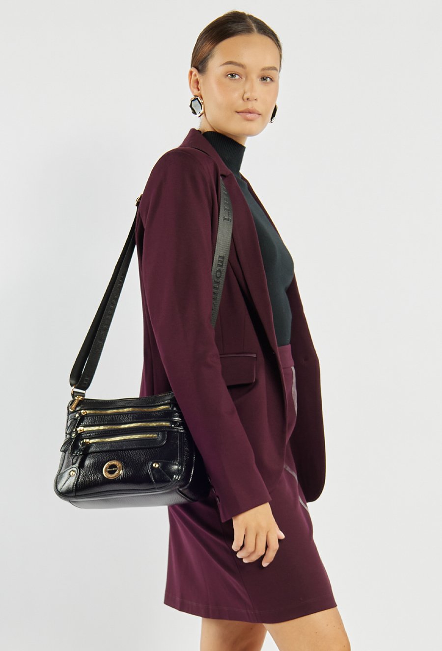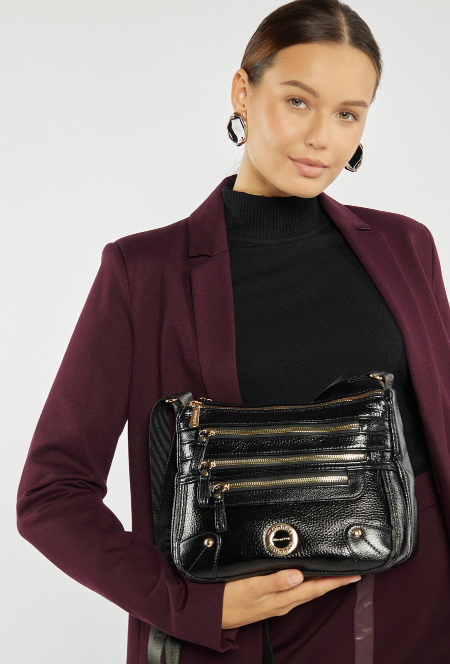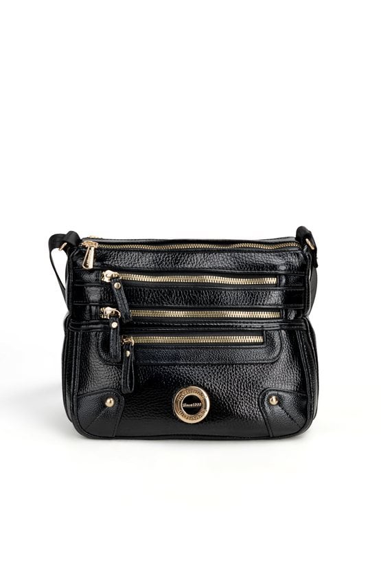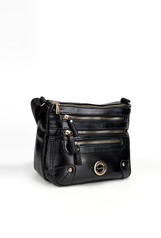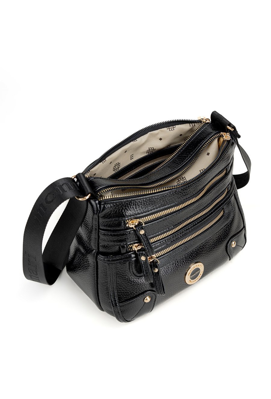 Kompaktowa i stylowa torebka o wymiarach 25 × 21 × 10 cm – idealna do codziennych stylizacji. Model dwukomorowy, wykończony jasnymi, logowanymi podszewkami i wyposażony w praktyczne kieszonki na drobiazgi. Całość uzupełnia subtelny wzór, który dodaje charakteru. Torebka zawieszona jest na regulowanym pasku. Torbę należy przechowywać w dołączonym woreczku.