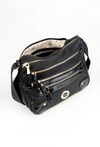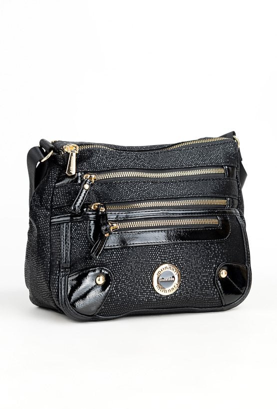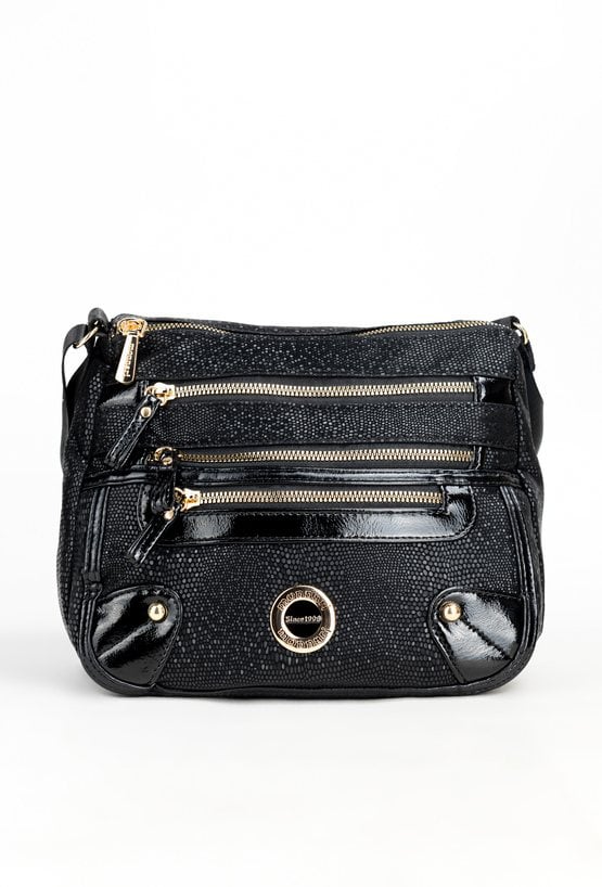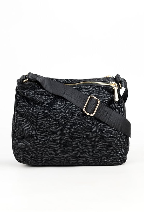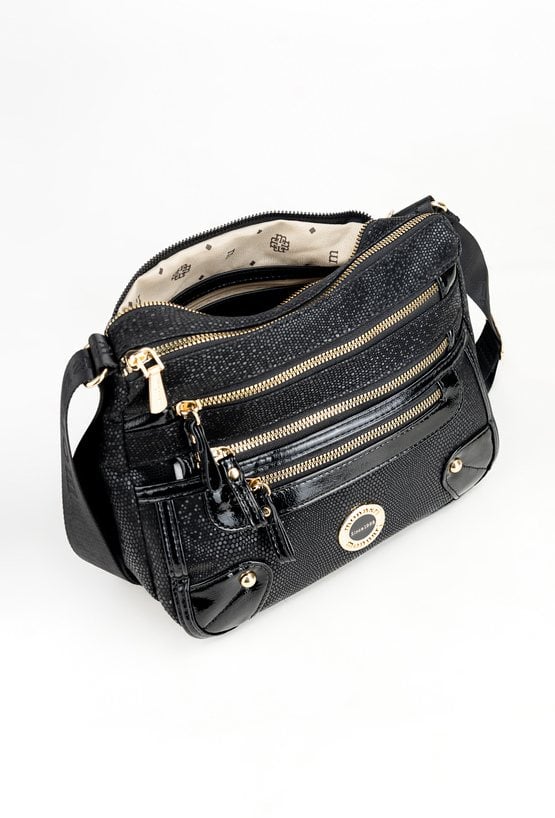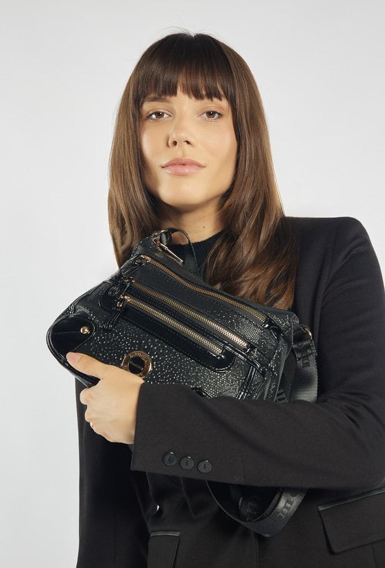 Kompaktowa i stylowa torebka o wymiarach 25 × 21 × 10 cm – idealna do codziennych stylizacji. Model dwukomorowy, wykończony jasnymi, logowanymi podszewkami i wyposażony w praktyczne kieszonki na drobiazgi. Całość uzupełnia subtelny wzór, który dodaje charakteru. Torebka zawieszona jest na regulowanym pasku. Torbę należy przechowywać w dołączonym woreczku.