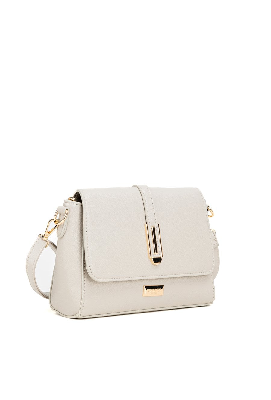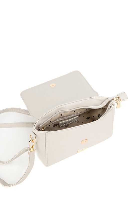 Torebka damska o wymiarach 22 × 16 × 7 cm. Model jednokomorowy z jasną, logowaną podszewką oraz dodatkowymi kieszonkami na drobiazgi. Wyposażona w regulowany pasek z możliwością odpięcia. Torbę należy przechowywać w załączonym woreczku.