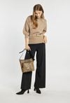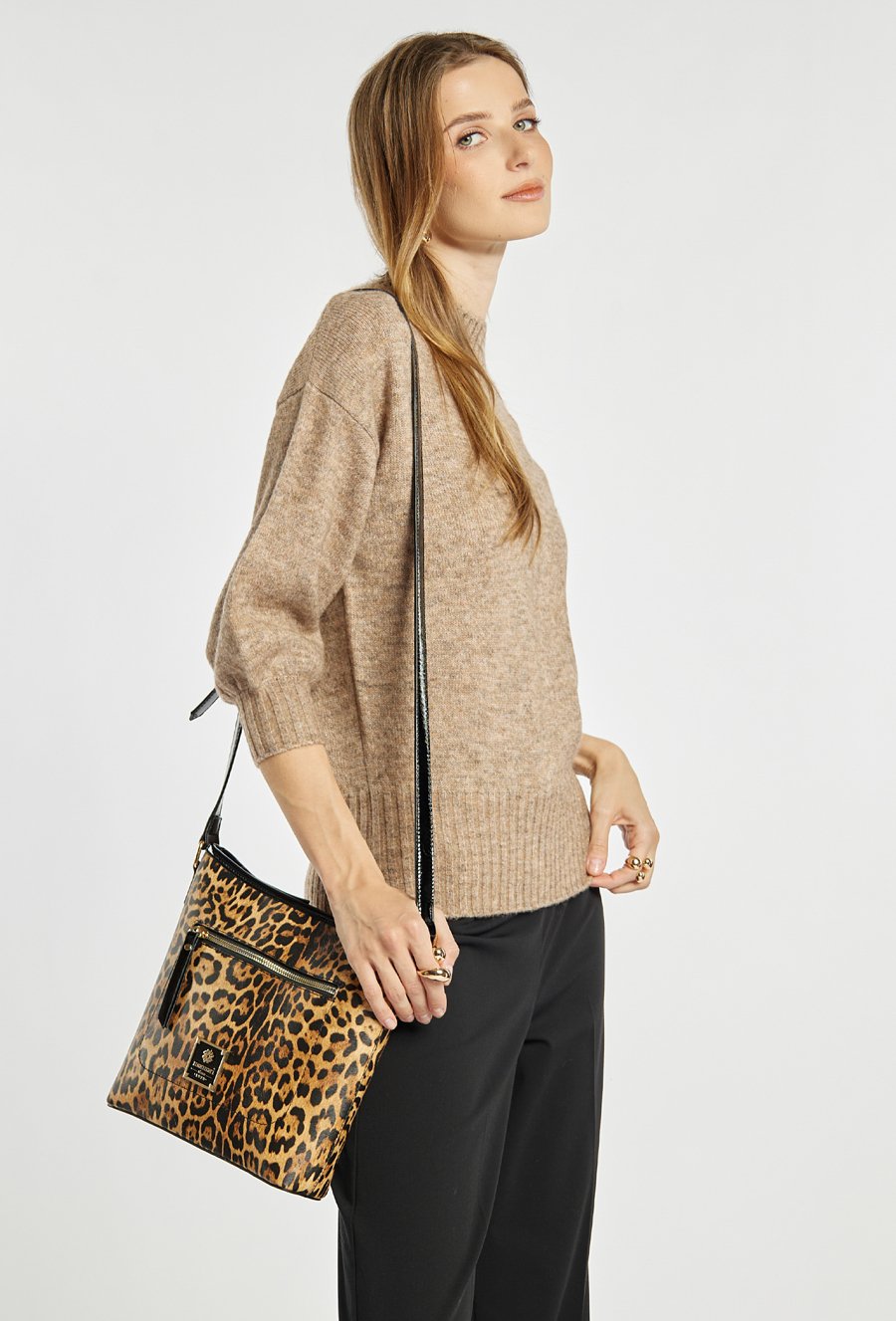 Codzienna torba damska o wymiarach 27 cm x 24 cm x 5 cm. Jednokomorowe wnętrze zostało wykończone jasną, logowaną podszewką i wzbogacone o praktyczne kieszonki na drobiazgi. Model zawieszony na regulowanym pasku, idealnie sprawdzi się w dynamicznym, miejskim stylu. Torbę należy przechowywać w dołączonym woreczku.