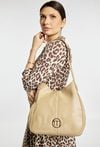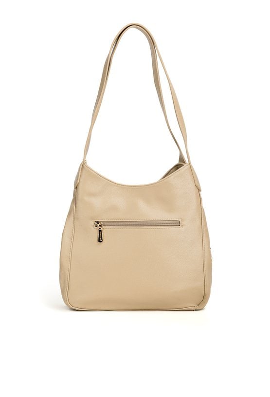 Torba damska typu worek z trzema komorami to pojemny i praktyczny model na co dzień. Torba ma jasne, logowane podszewki oraz dodatkowe kieszonki na drobiazgi, które ułatwiają organizację. Torba zawieszona na rączkach zapewnia wygodę noszenia i swobodę użytkowania. Torbę należy przechowywać w dołączonym woreczku. Wymiary: 33 cm x 27 cm x 10 cm